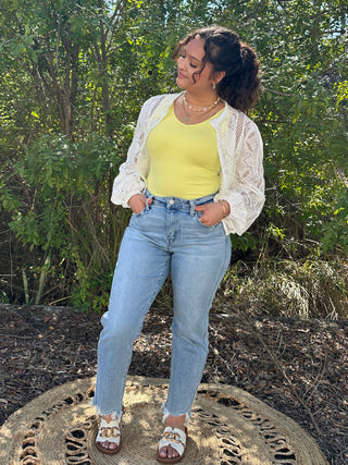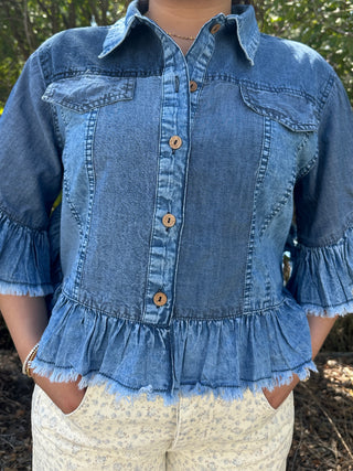 Young Threads Shades of Denim Ruffle Hem Crop Jacket Top