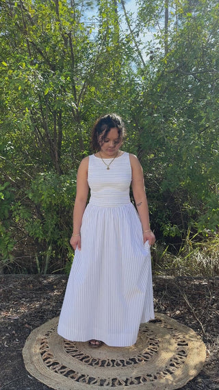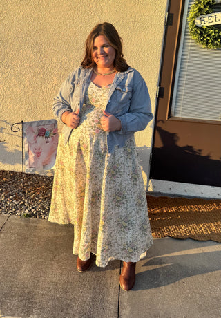 Ivory Vintage Floral Linen Blend Smock Back Midi Sundress