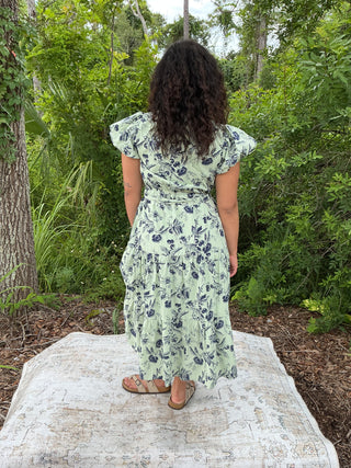 &Merci Matcha Green Floral Embroidered Midi Dress FINAL SALE