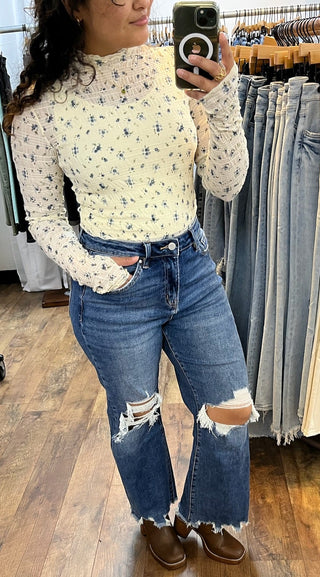 Ivory Cuff Sleeve Side Slit Crochet Top FINAL SALE
