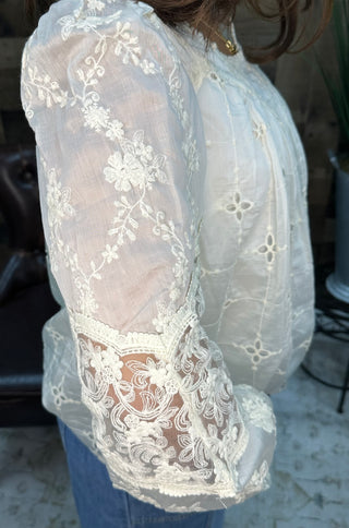 Listicle Ecru Maxi Skirt w/ Tufted Dot Lace Tiers FINAL SALE