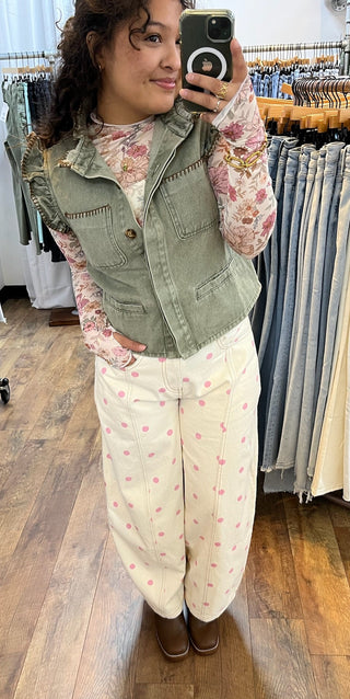Olive Green Contrast Twill Tape Elastic Waist Jogger Parachute Pants