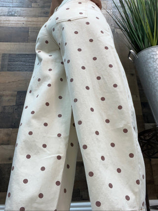 Peach Love Cream & Brown Polka Dot Gypsy Fit Wide Leg Pant
