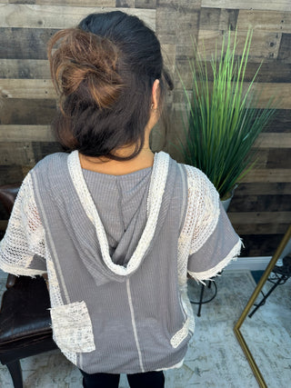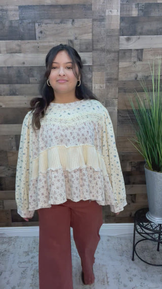 POL Ivory & Floral Hi-Lo Shacket Top w/ Crochet Detail FINAL SALE