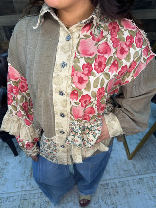 POL Mint & Lilac Floral Patchwork Shacket FINAL SALE