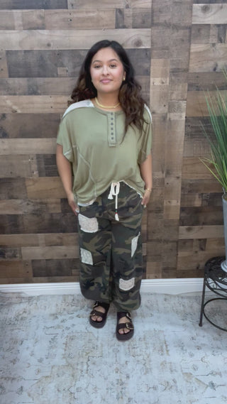 POL Ivory & Floral Patchwork Jogger Pants FINAL SALE