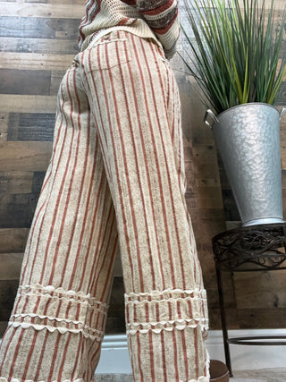 BlueVelvet Brick Stripe Wide Leg Pant w/ Elastic Waist & RicRac Trim