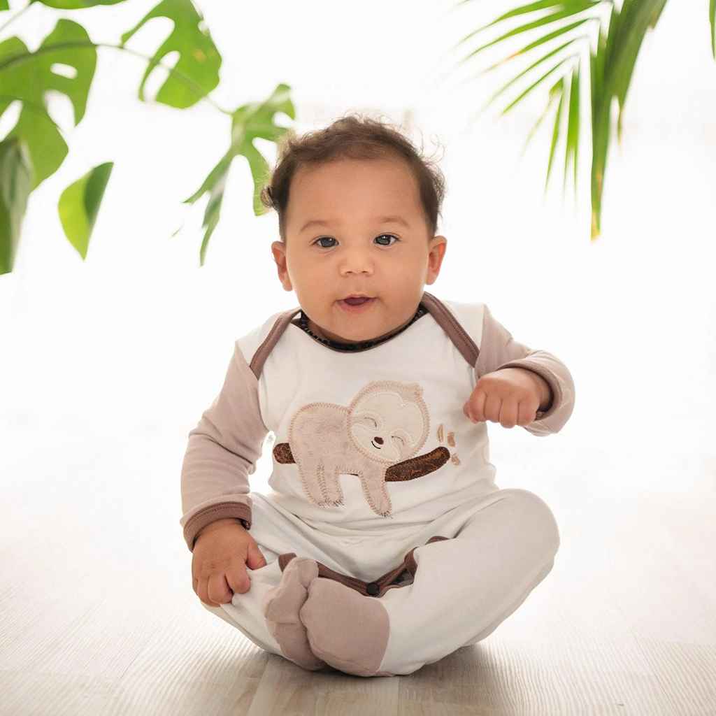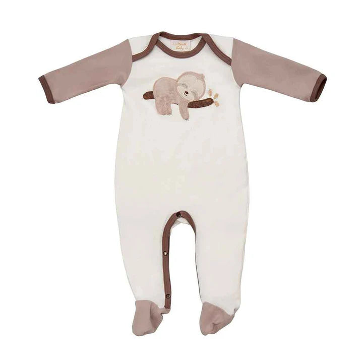 Haute Baby is the epitome of Southern charm! This footie has a precious sloth on the front, and is the perfect gift for new babies!