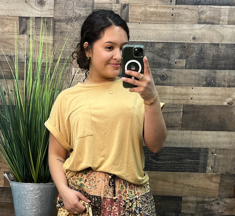 Mustard Yellow Oversize Cuff Slv Pocket Top