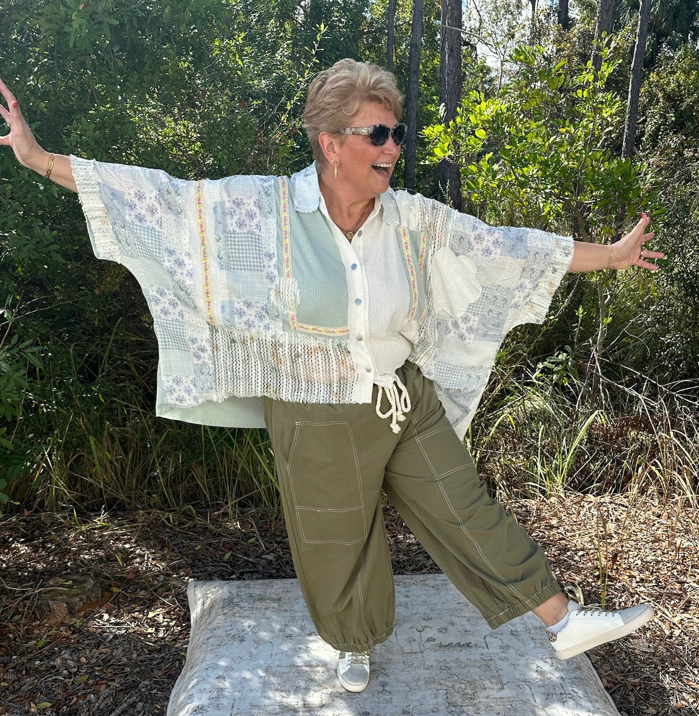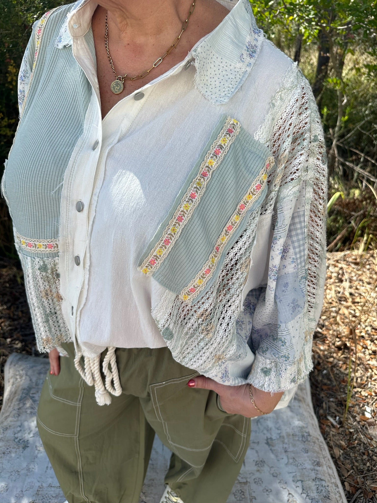 POL Gypsy Belle Blue Short Sleeve Oversized Button Down Top