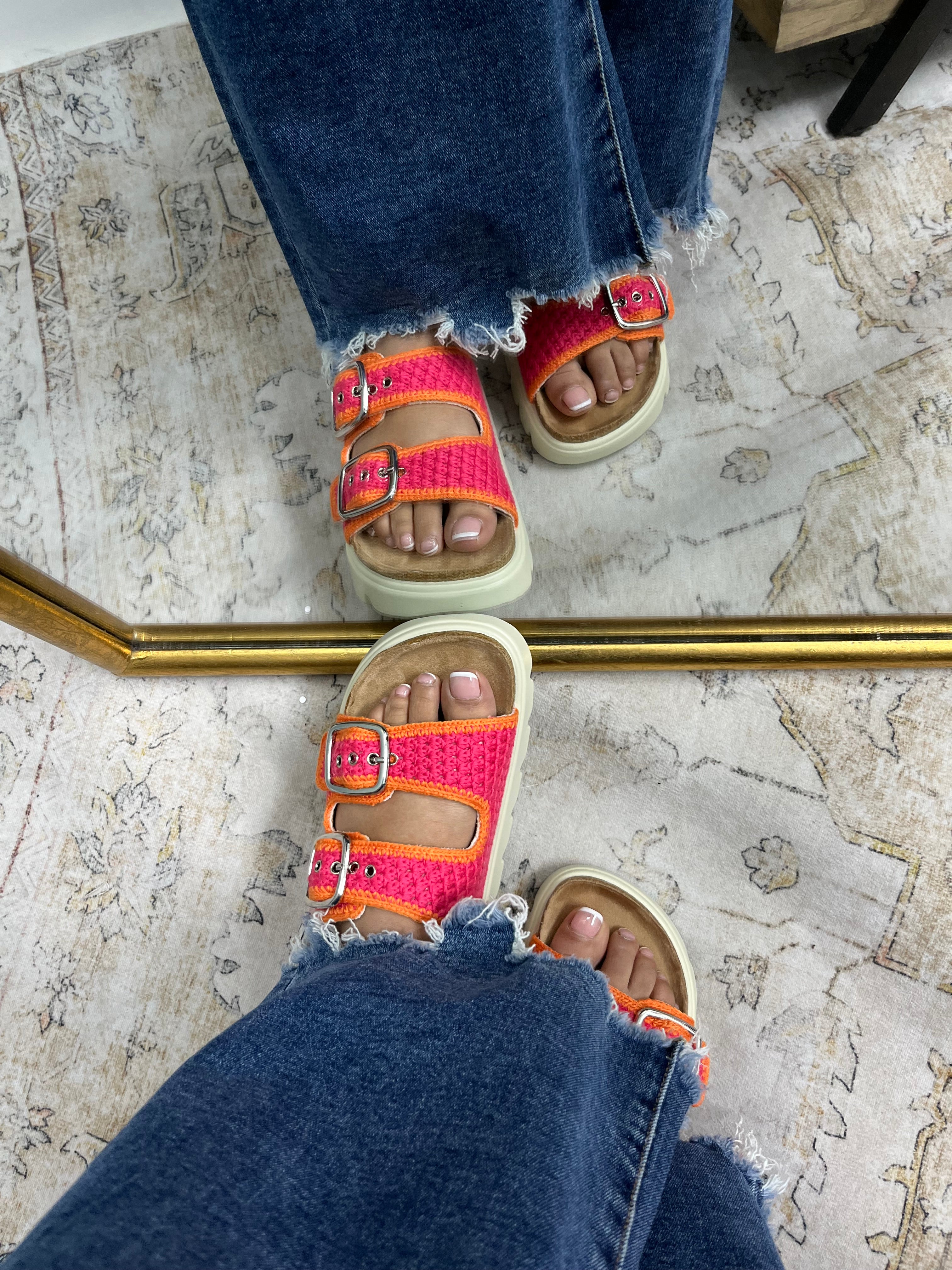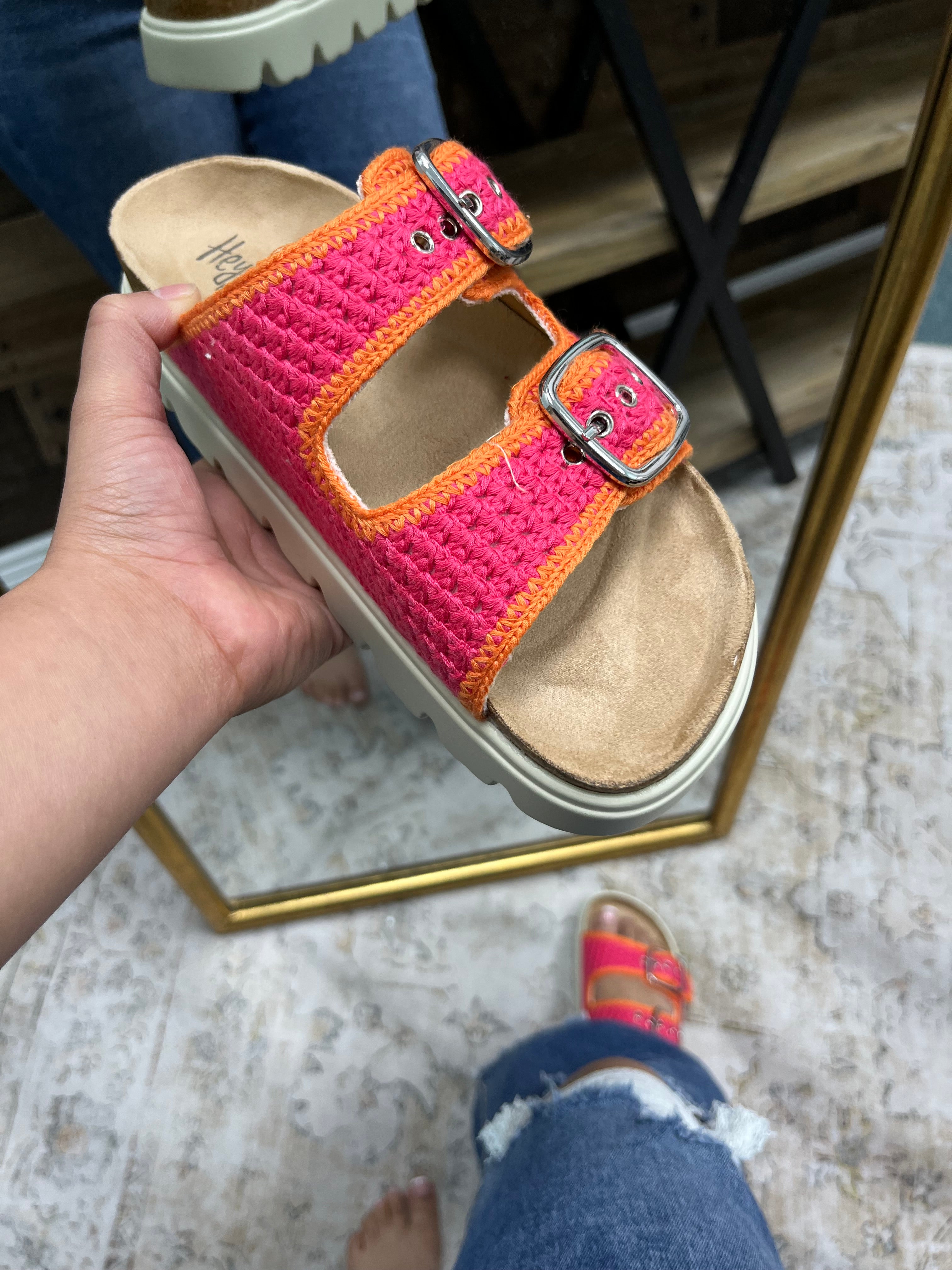 Step into summer with these eye-catching Corkys Rumor Has It platform sandals! Featuring a vibrant hot pink and orange crochet design, these statement shoes blend boho charm with modern comfort. The sturdy platform sole keeps you elevated in style while the breathable crochet upper keeps your feet cool. Perfect for beach days, festivals, or anywhere you want to turn heads. Slip them on and let the whispers begin!