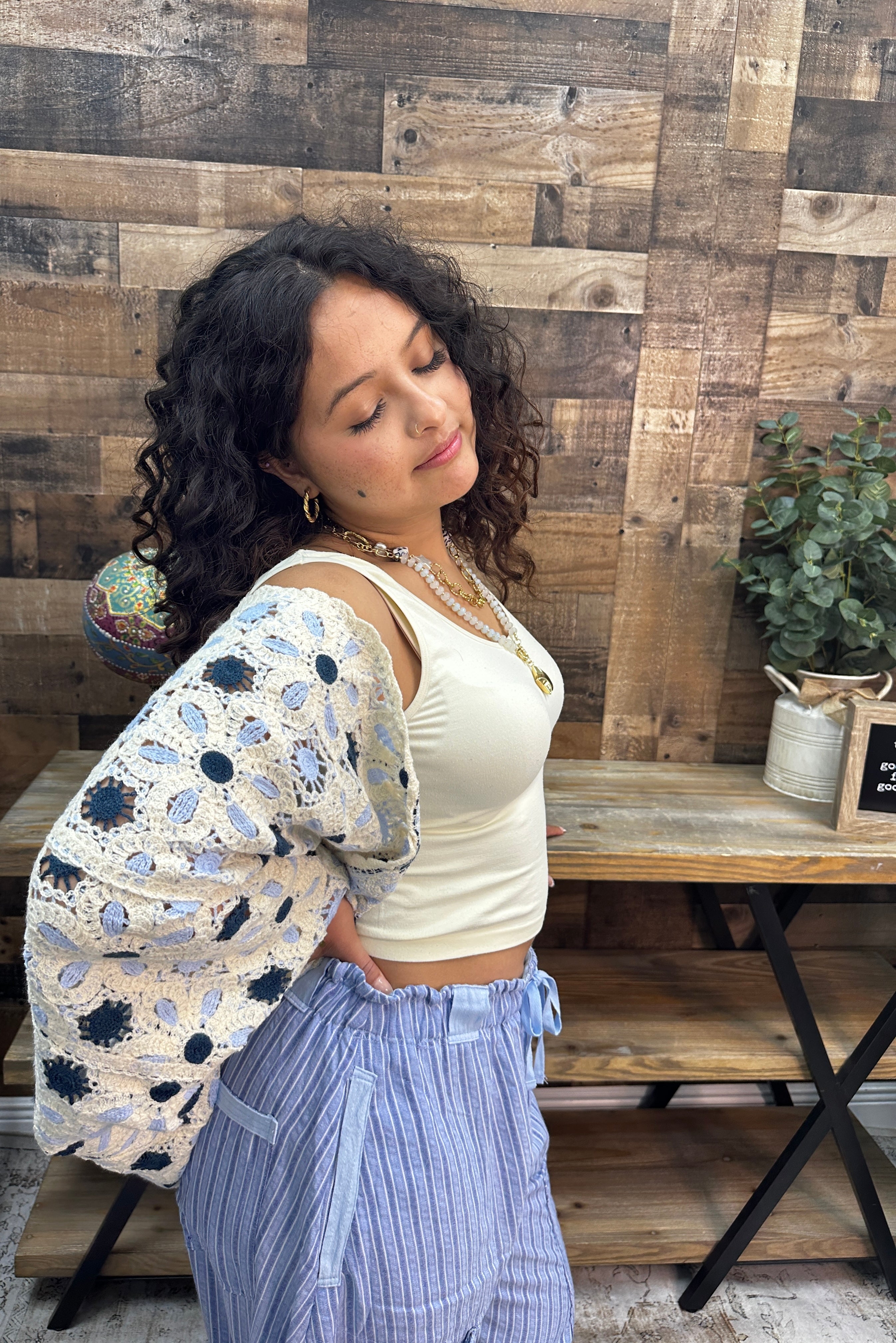 Get ready to turn heads in this whimsical crochet cardigan that's basically a wearable work of art. Those dreamy dolman sleeves drape like they were made for lazy Sunday vibes, while the roomy fit means you can layer it over literally anything without feeling cramped. The delicate floral pattern paired with charming border accents gives major boho-chic energy that'll have everyone asking where you got it. This piece is the perfect excuse to add some texture and personality to your everyday rotation.