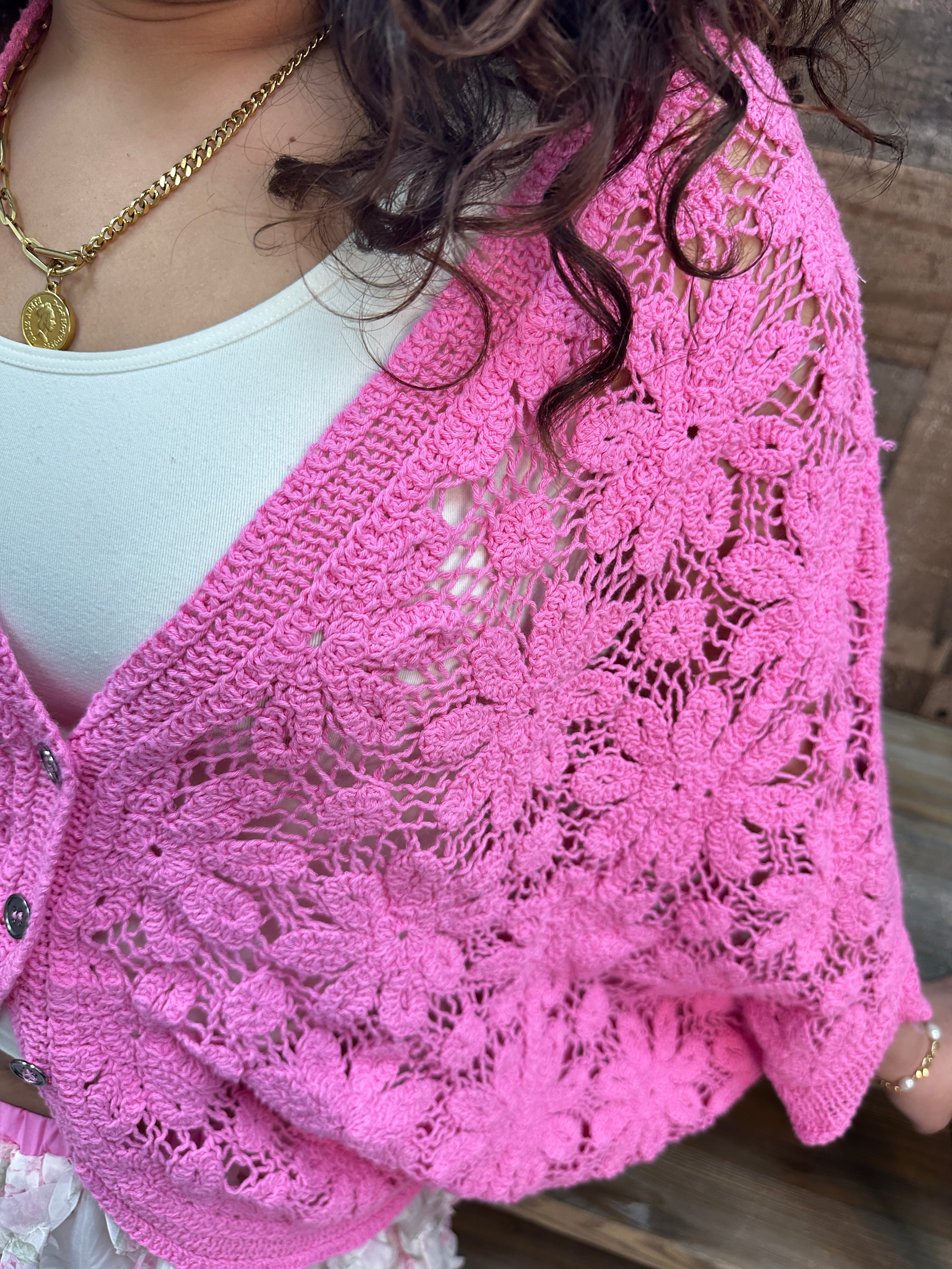 POL BUBBLEGUM PINK Cardigan Crochet Sweater Top