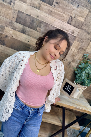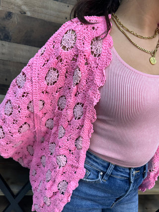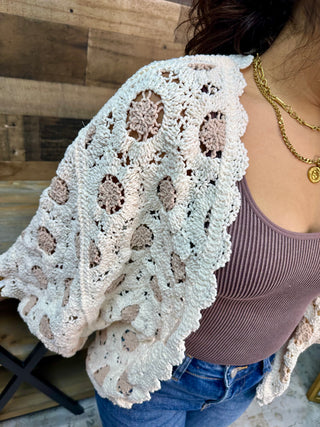 POL IVORY & ORANGE 3/4 Slv Cardigan Granny Square Crochet Sweater Top