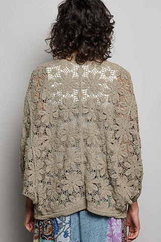 POL IVORY & YELLOW 3/4 Slv Cardigan Granny Square Crochet Sweater Top