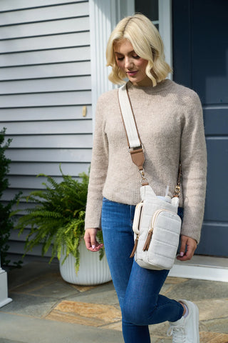 OATMEAL CANVAS HydroBag® HANDLE™ Purse w/ Vegan Leather Crossbody Strap