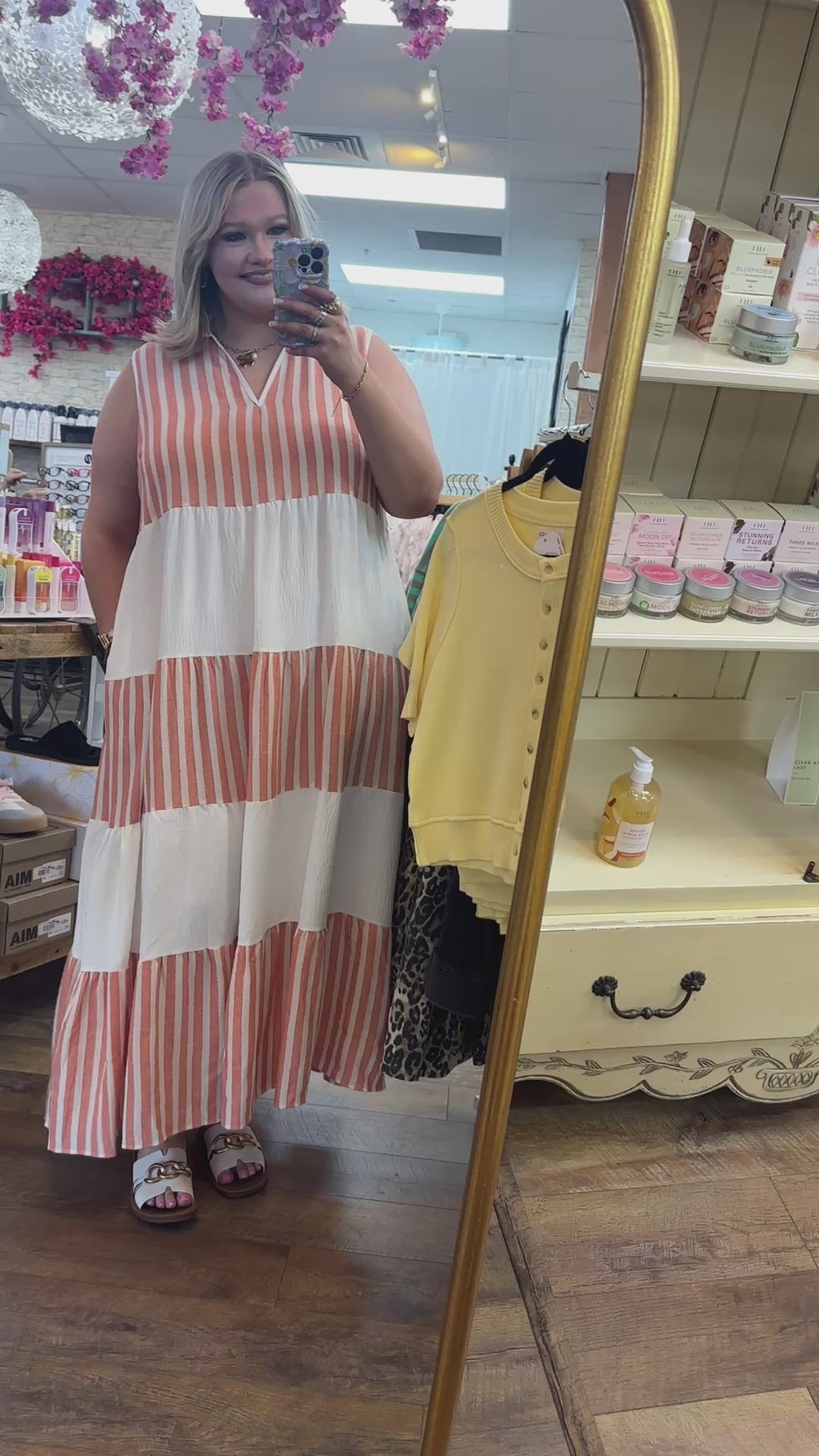 Now this is what vacation dreams are made of, sugar! The Coral Stripe Resort Maxi Dress is giving all the beachy, breezy, resort-ready vibes and we are HERE for it. With its gorgeous coral and cream striped panels, flowy tiered skirt, and chic sleeveless collared neckline, this dress is the definition of effortless elegance. Whether you're strollin' the boardwalk, brunching with the girls, or soaking up the sunshine at a backyard barbecue, this beauty moves with you and looks absolutely stunning doin' it. Just add your favorite wedges and a straw bag, and honey, you're resort-ready anywhere you go!