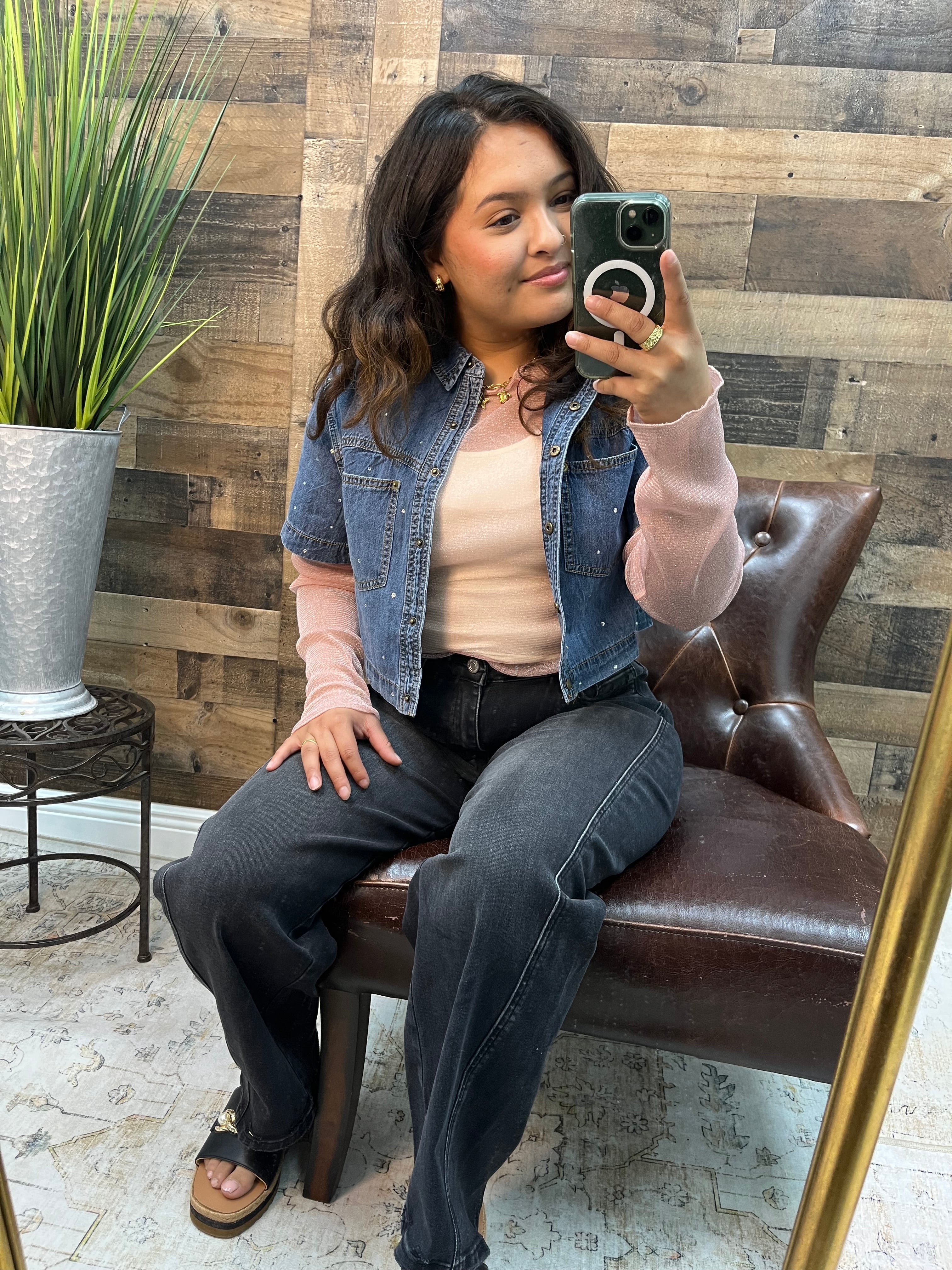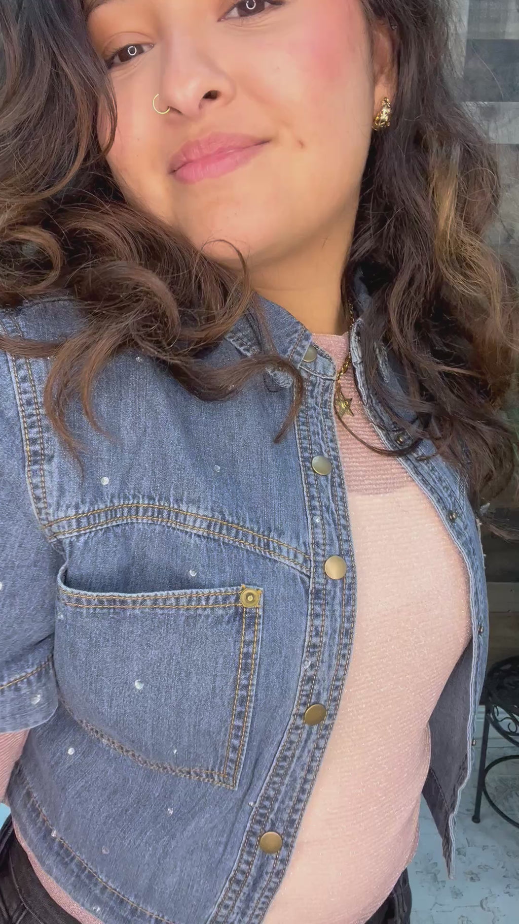 Elevate your casual look with the Cozy Co Rhinestone Washed Denim Short Sleeve Shrug Top. This lightweight, playful shrug adds just the right amount of sparkle with subtle rhinestone details, making it perfect for layering over your favorite tees or a fun dress. Designed with a full size run to fit everyone, it’s comfort and fun combined in one effortlessly cool piece.