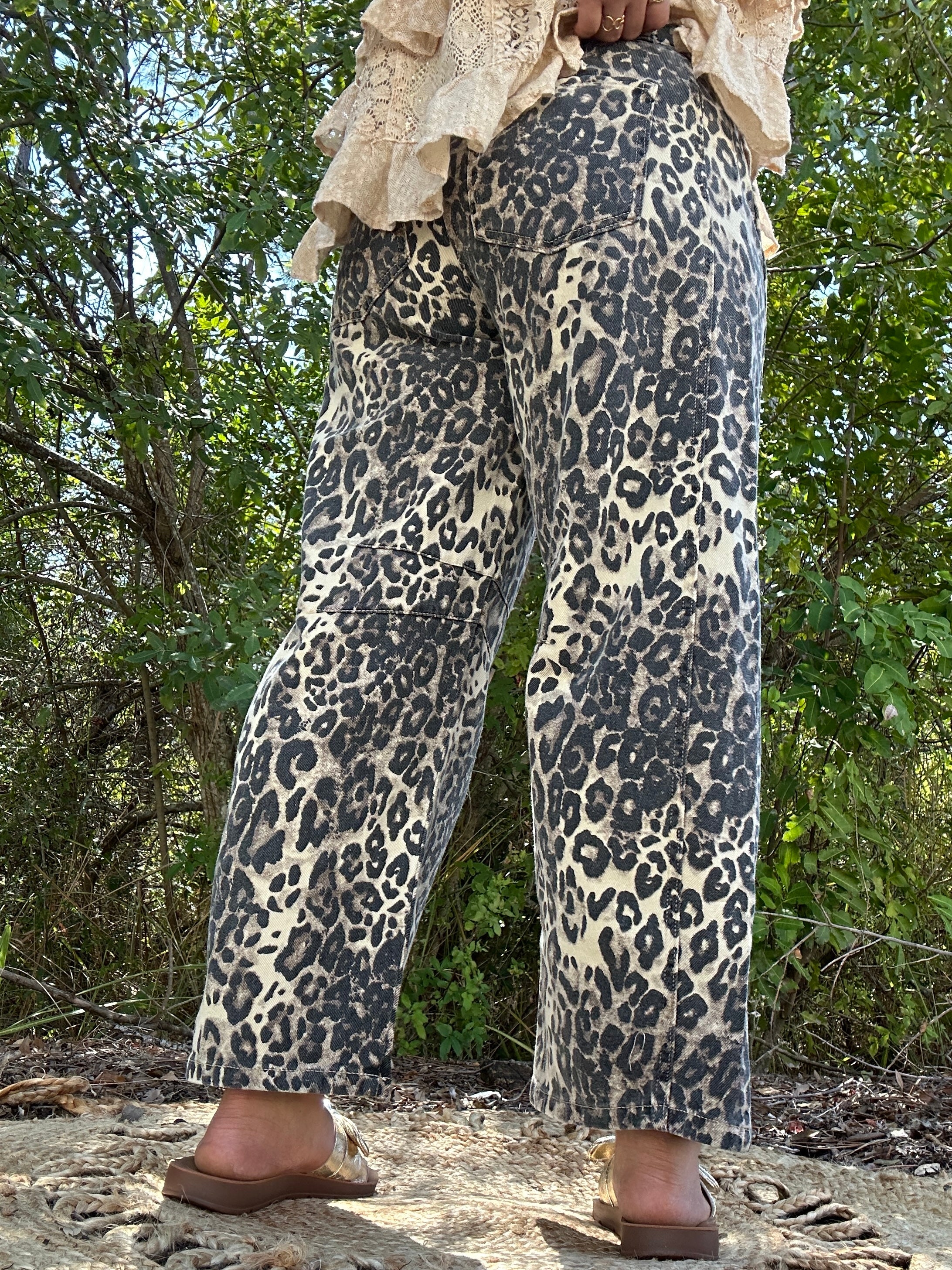 Oh honey, you didn't think we'd leave leopard out of the party, did you? These gypsy fit pants took everything you love — the relaxed silhouette, the vintage button fly, the move-with-you comfort — and wrapped it all up in the most fun leopard denim print. They're bold without being loud, sassy without trying too hard, and they pair with way more than you'd expect. A simple black tee? Stunning. A chambray button-down? Chef's kiss. That butter yellow cardigan you just added to your cart? Perfection. These are the pants that prove you can be comfortable and fierce at the exact same time. Go ahead, take the walk on the wild side — your closet will thank you.