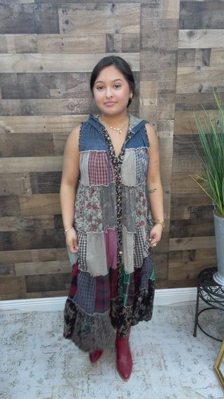 Embrace effortless style with the Boho Patchwork Sleeveless Hoodie Duster Dress. Its lightweight patchwork design adds a splash of color and texture, perfect for layering over your favorite outfit. The sleeveless cut and relaxed fit keep you cool and comfy, while the hoodie adds a fun, casual vibe. Whether you're off on an adventure or just enjoying a sunny day, this duster dress brings playful charm to every moment.