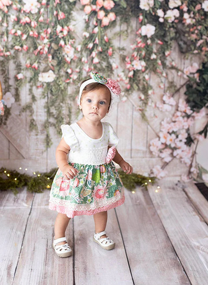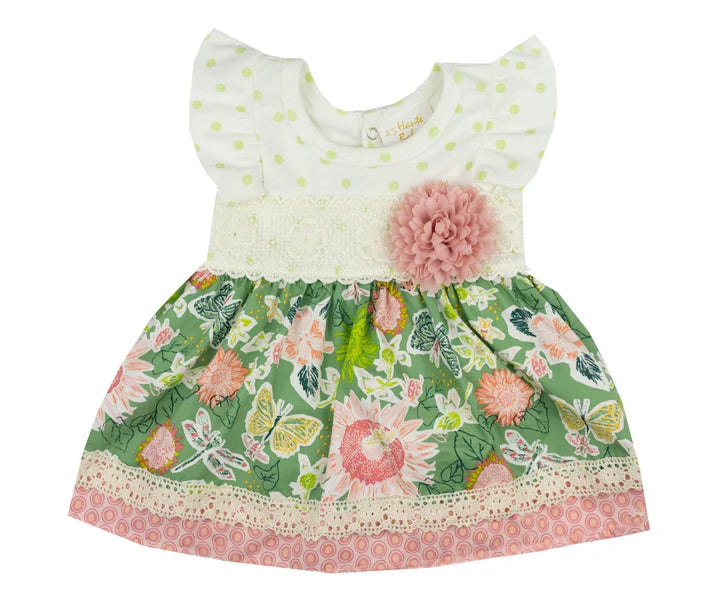 Haute Baby is the epitome of Southern charm! This infant diaper dress features gorgeous floral and dot fabrics with lace trim and an accent flower. Perfect for pictures!
