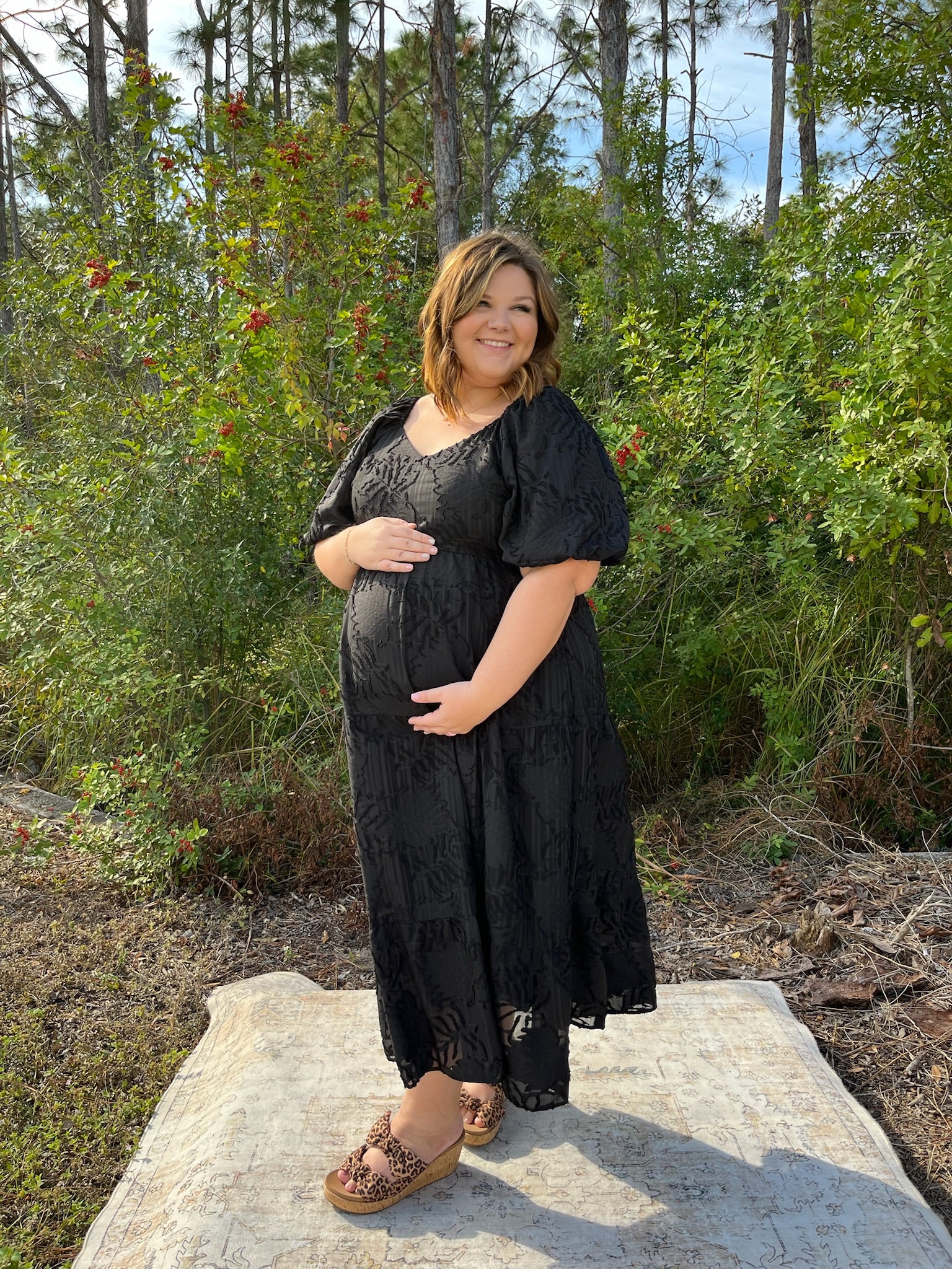 Bring playful elegance to your wardrobe with the Polagram Black Textured Tiered Puff Sleeve Midi Dress. Featuring voluminous puff sleeves and a flirty tiered skirt, its textured fabric adds a twist of charm. This dress balances fun and sophistication effortlessly, making it your go-to for both casual outings and special occasions.