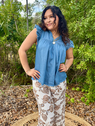 Young Threads Boho Western Pintuck Denim Top FINAL SALE