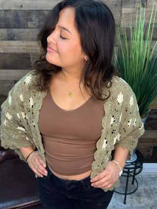 Young Threads Khaki & Pink Floral Embroidered Patchwork Top