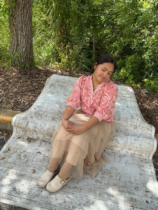 FINAL SALE Listicle Maxi Skirt Taupe Cinched & Tiered High Waist Tulle