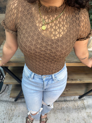 Clay Rose Floral Print Mesh Long Slv Layering Top w/ Thump Opening FINAL SALE