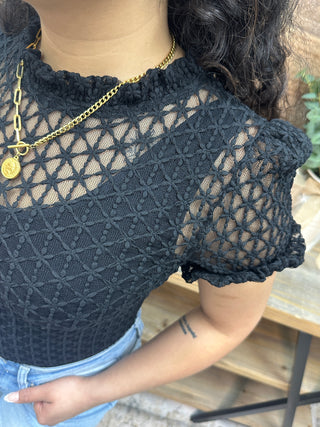 Davi & Dani Black Sheer Diamond Layering Top FINAL SALE