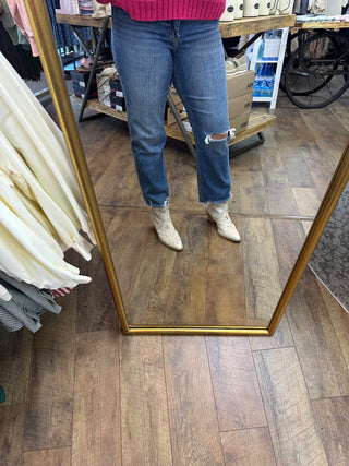 Lovervet - LV1143 High Rise Straight Leg Distressed Med Wash Dad Jeans