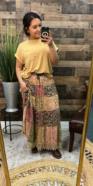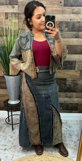 Washed Denim Favorite Flair Midi Skirt w/ Contrast Stitch