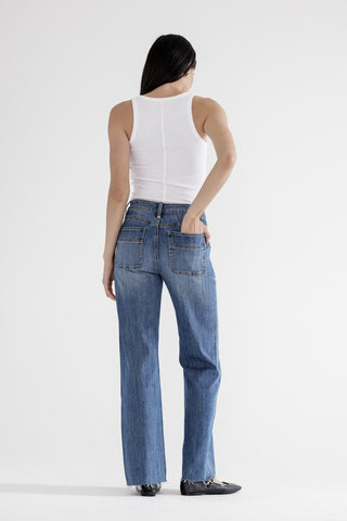 MICA T3536A High Rise Raw Hem Loose Fit Straight Leg Jeans Med Wash