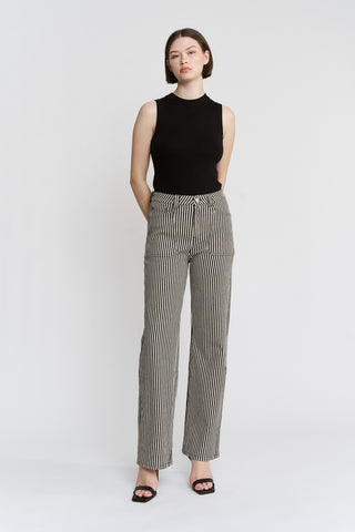 MICA T3568BT Super High Loose Fit Straight Black Striped Jeans