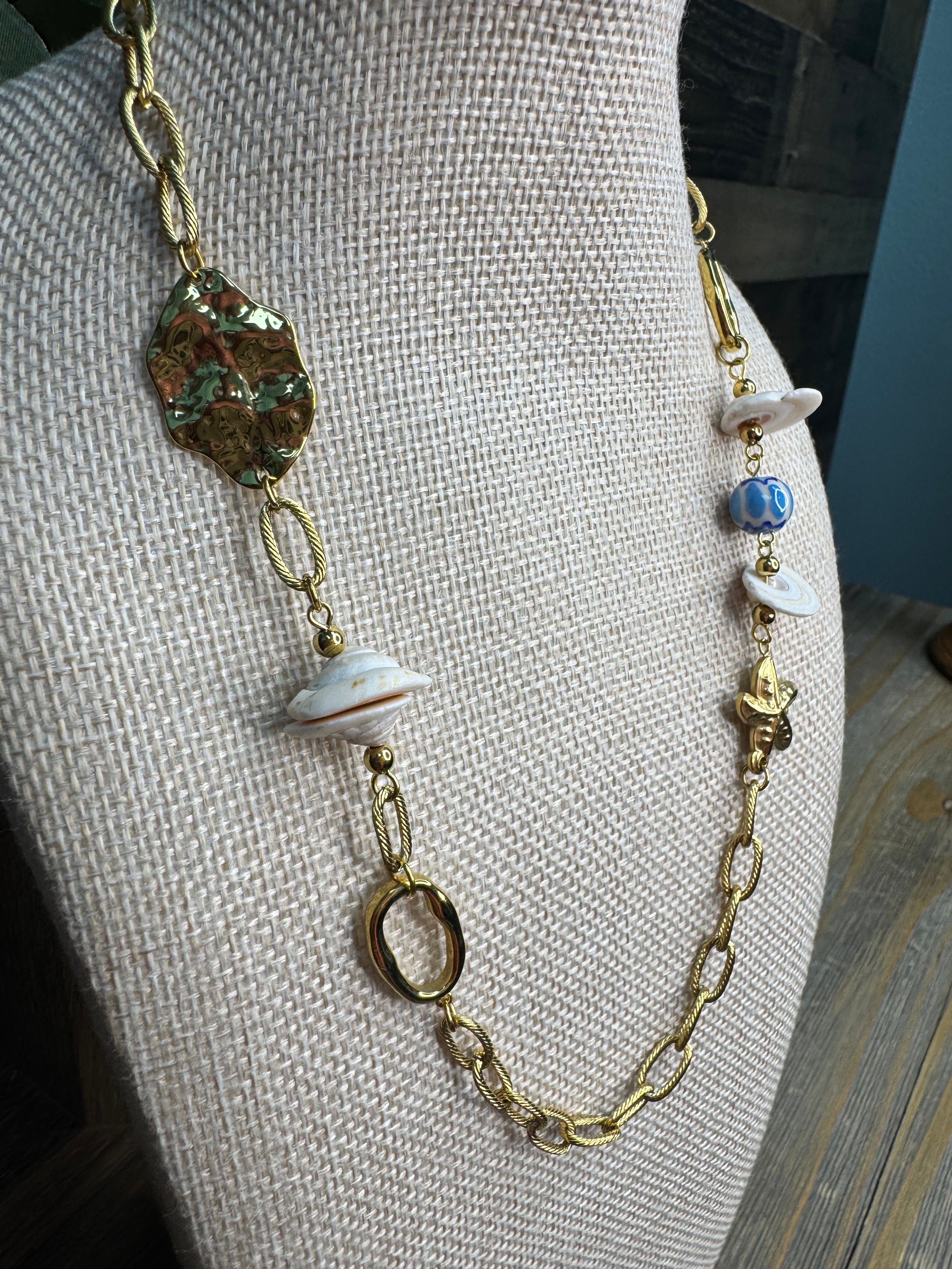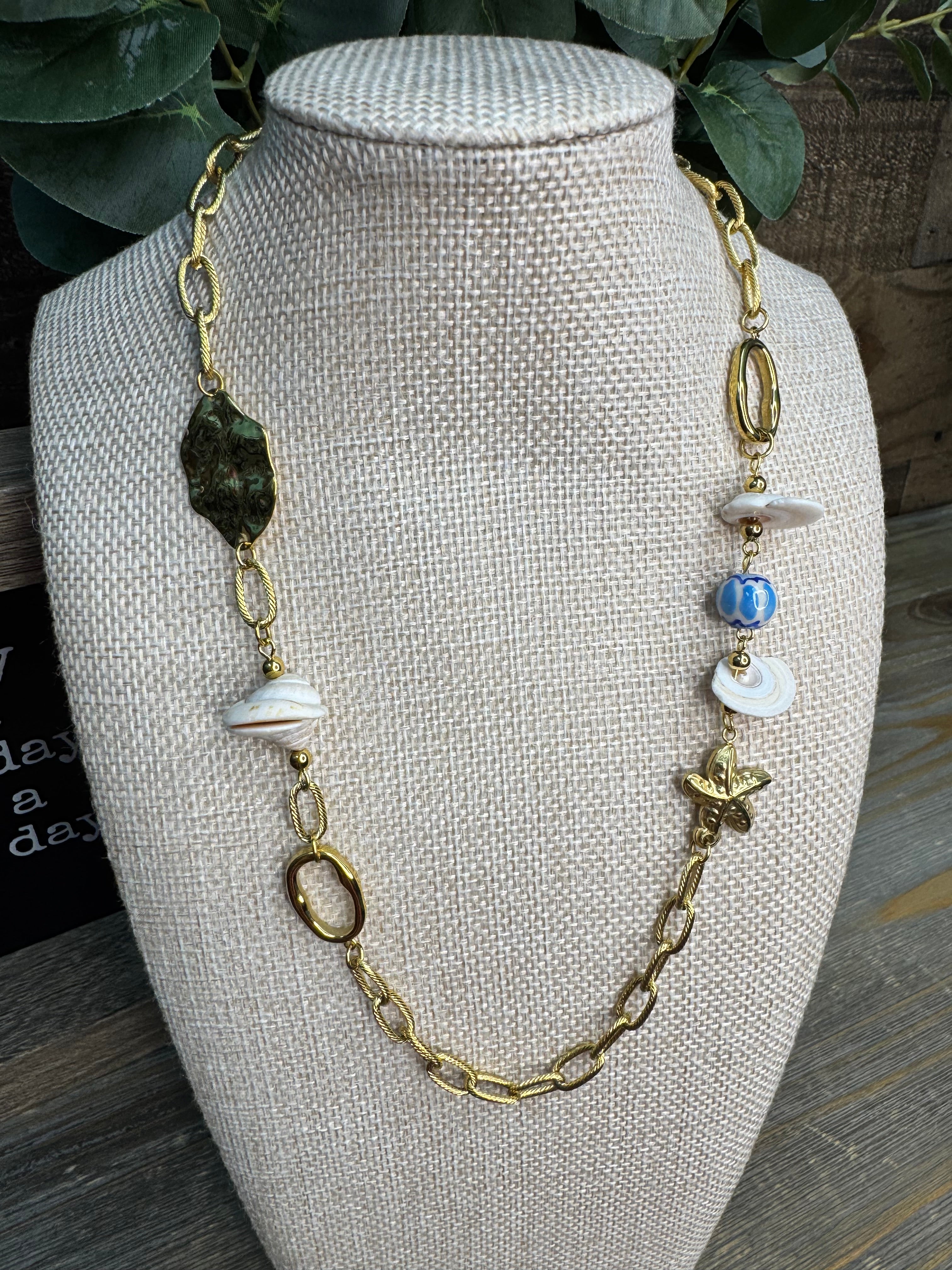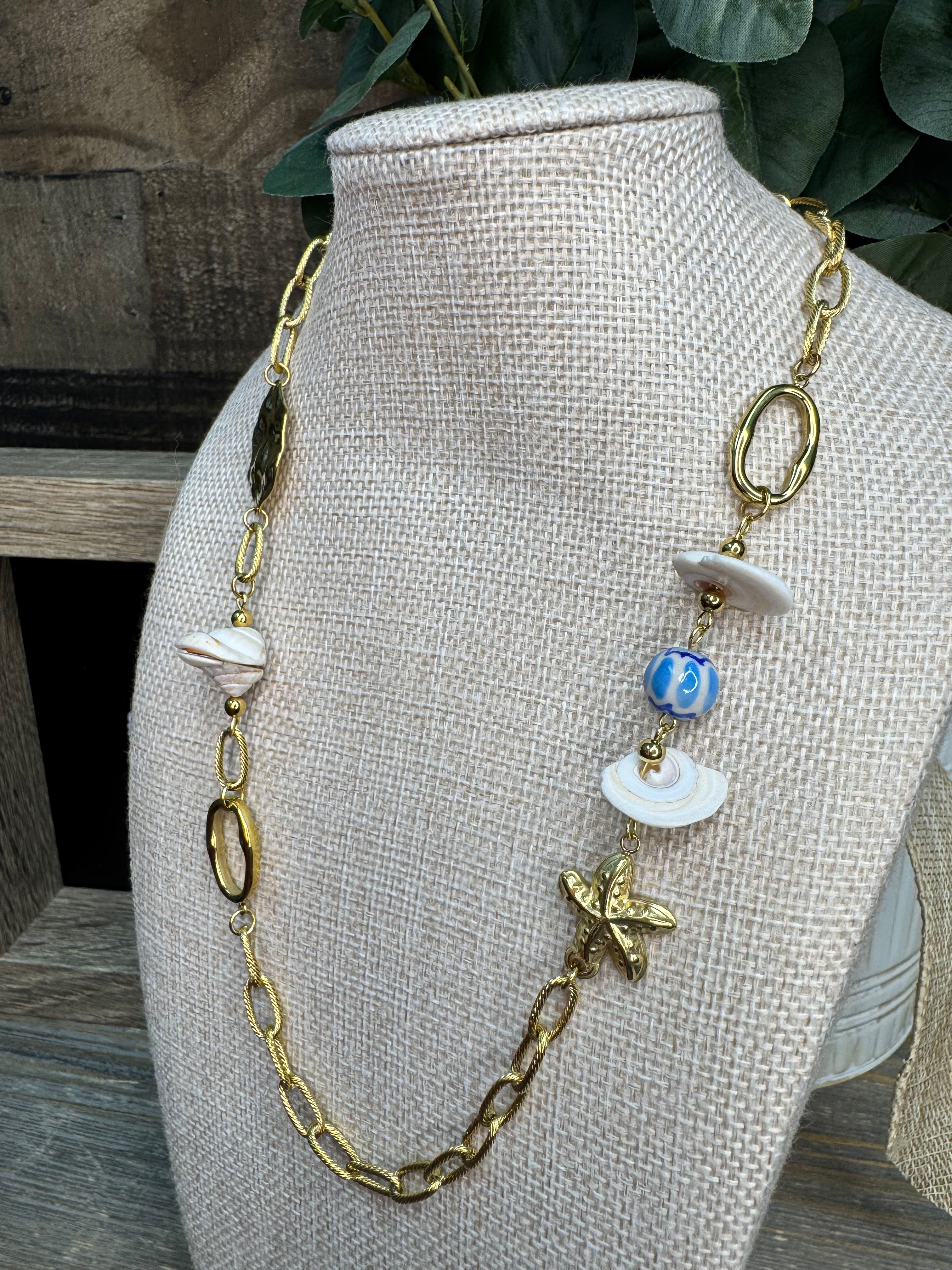 Let the ocean whisper its secrets with this charming Golden Tide Seashell Necklace. Delicate seashell charms dangle playfully from a lustrous gold chain, capturing the carefree spirit of sun-soaked beach days. The adjustable 19" length with a 2" extender ensures a perfect fit for any adventure. Whether you're channeling coastal vibes or adding a touch of seaside whimsy to your everyday look, this necklace brings the beach wherever you go.