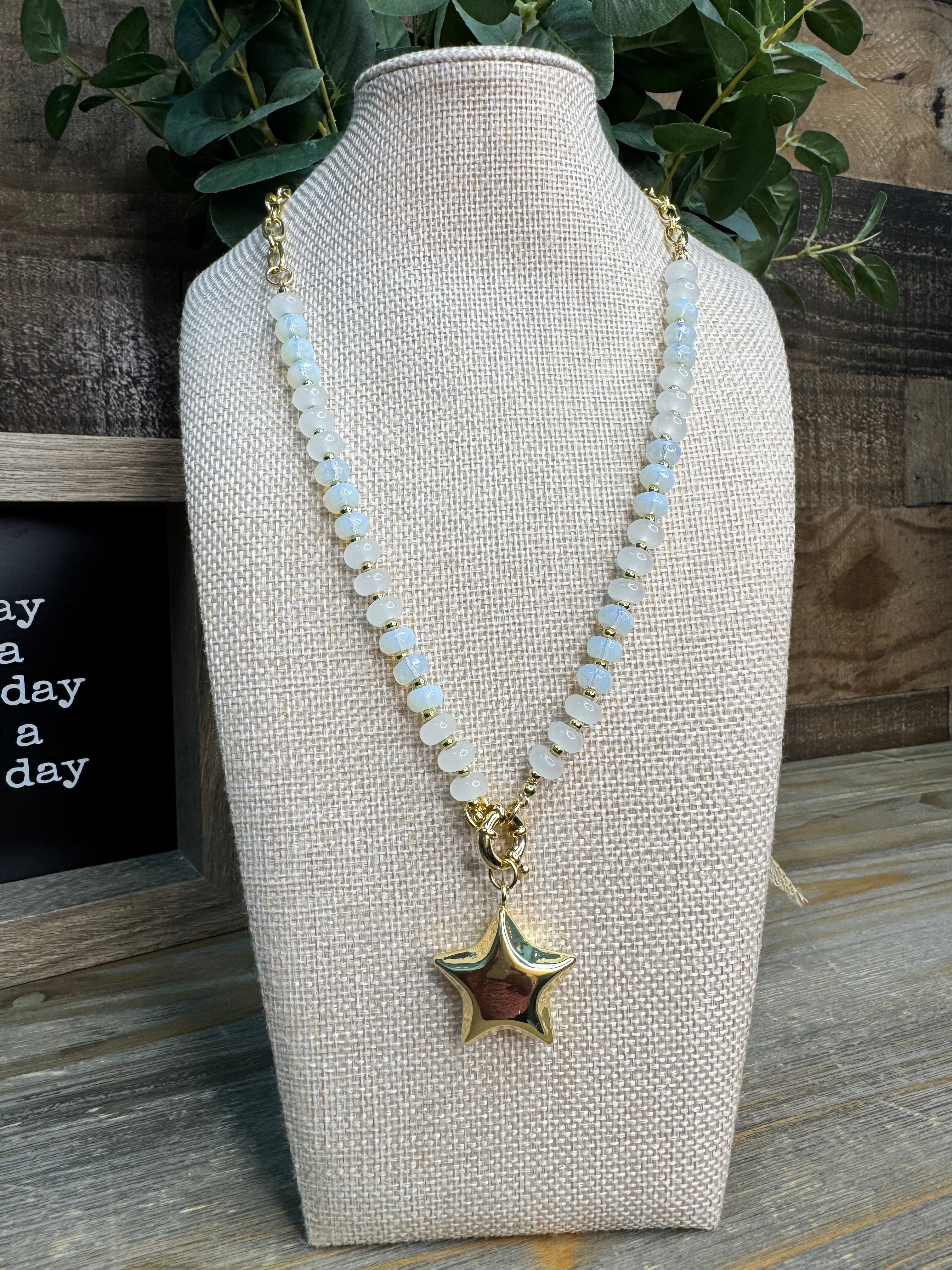 Dreamy and delightful, this Pearl Puff Star Necklace combines soft milky white beads with gleaming gold accents for an ethereal look. The puffy star charm steals the show, adding dimension and whimsy to your jewelry collection. With a generous 20" length plus a 3" extender, you can wear it high or low depending on your mood. Perfect for those who love celestial-inspired accessories with a touch of playful elegance.