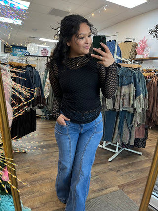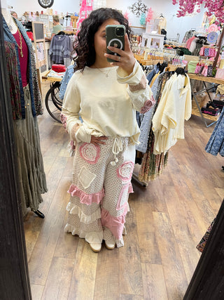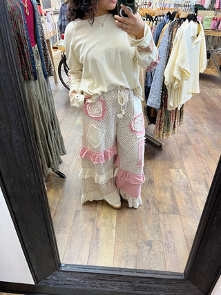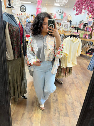 Easel Ecru Lace Mix Mineral Wash Oversize Fit Floral Embroidery Top