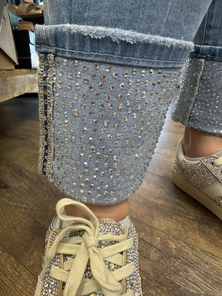 Vervet T7000 High Waist Crop Slim Straight w/ Rhinestone Cuff Jeans