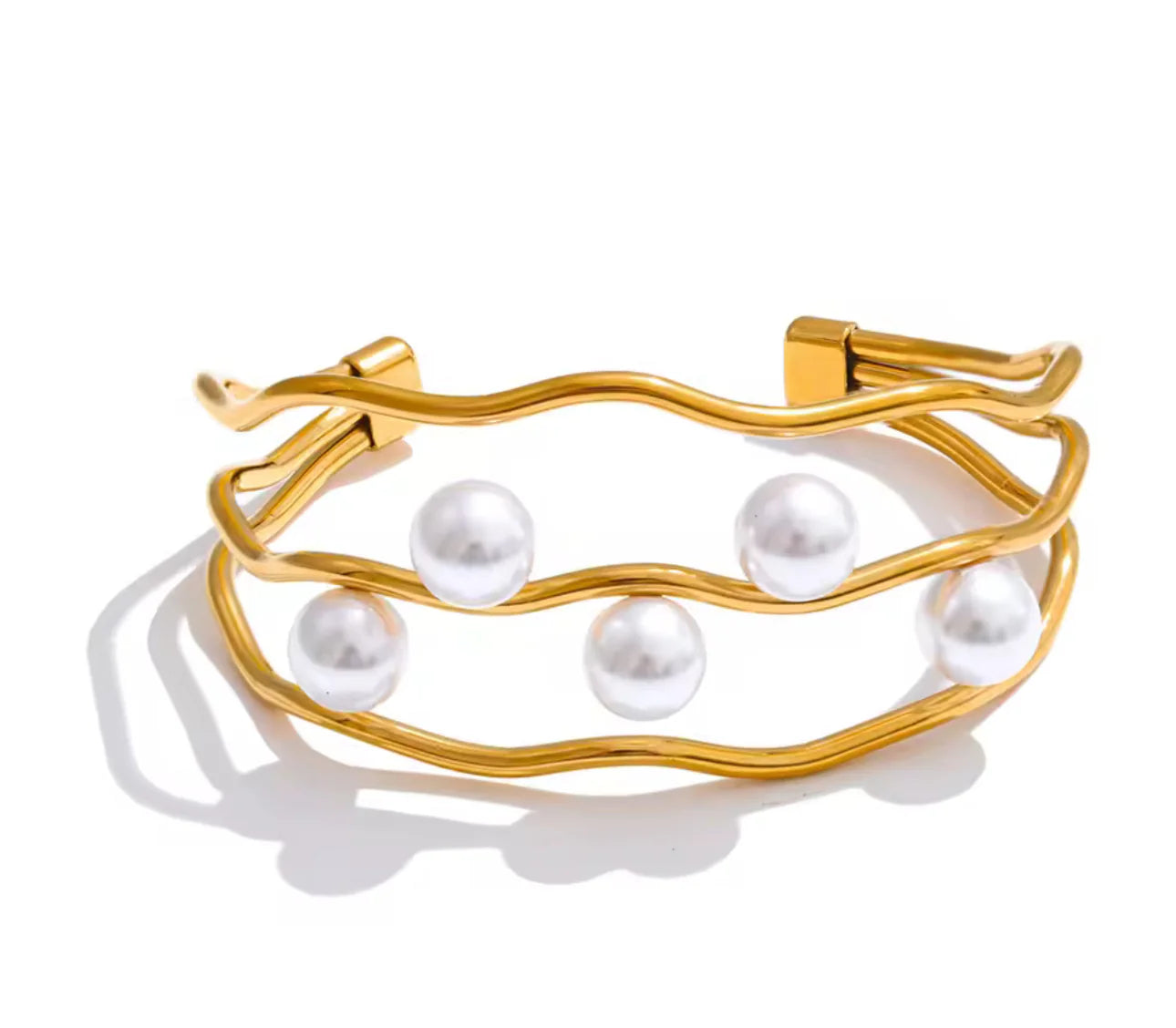 Lauren Kenzie Gia Pearl Bangle Cuff Bracelet