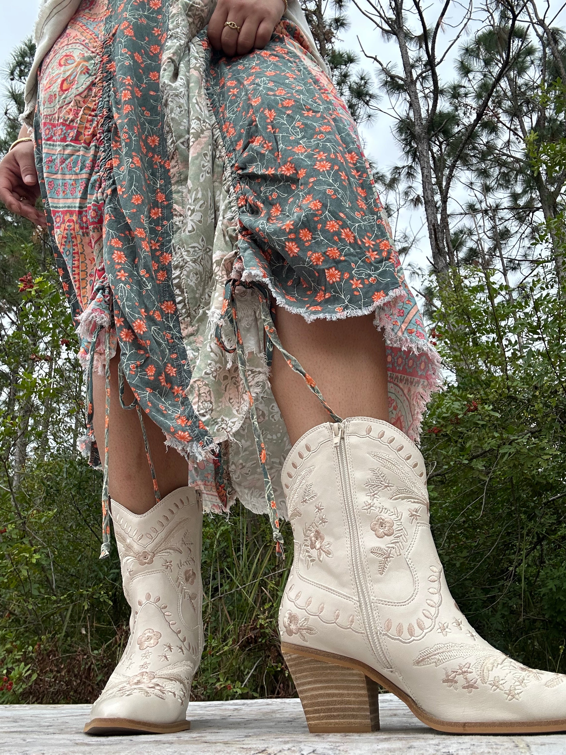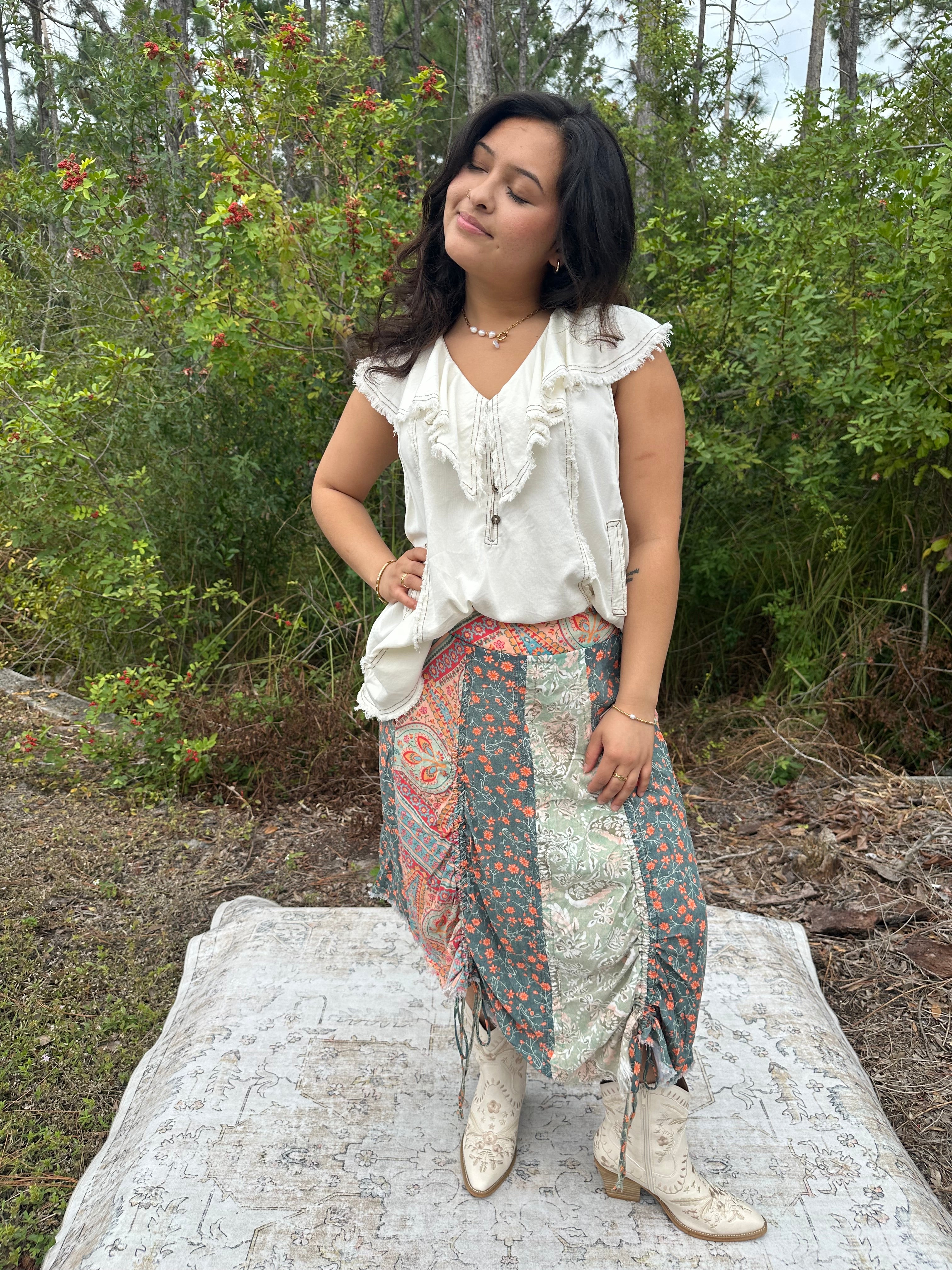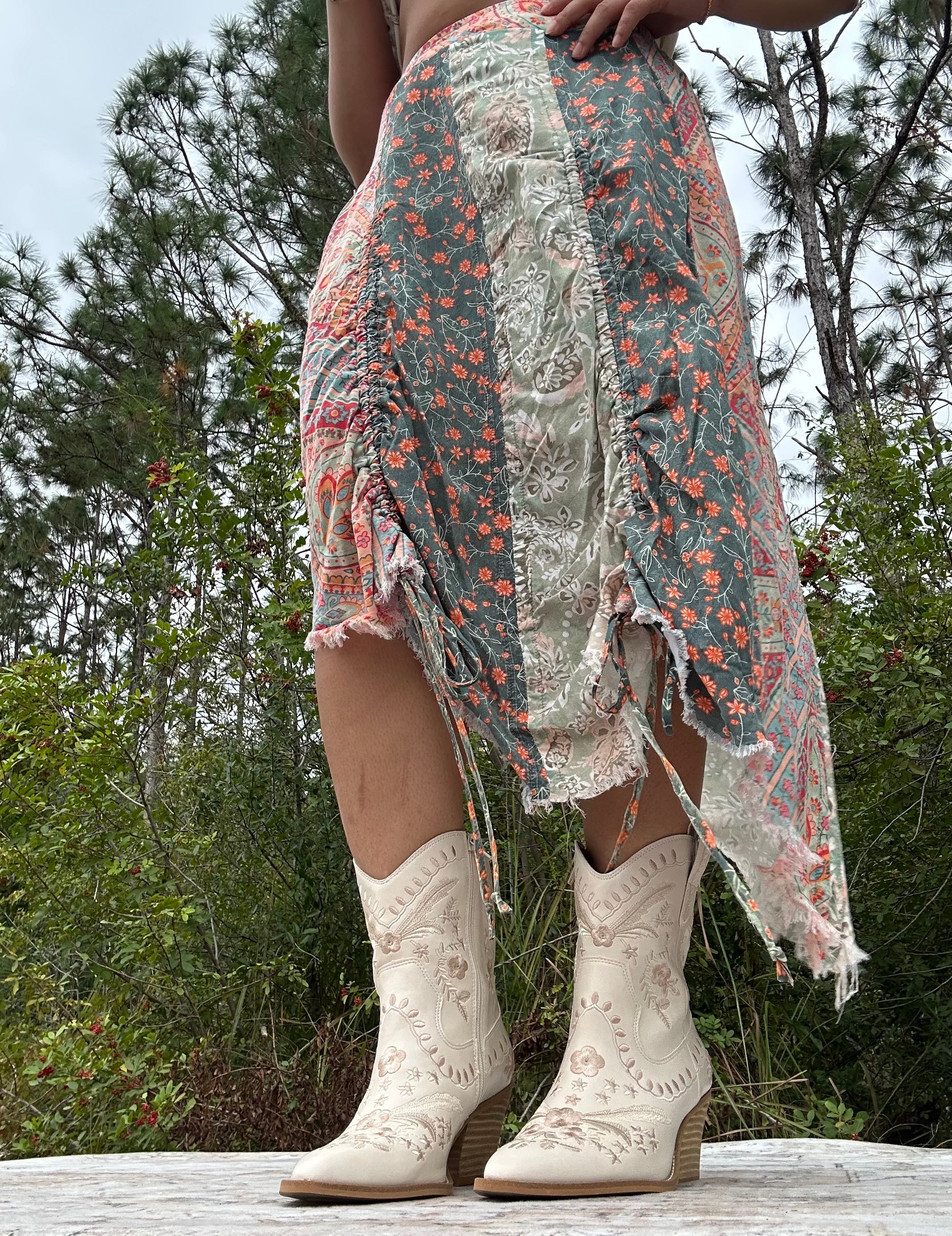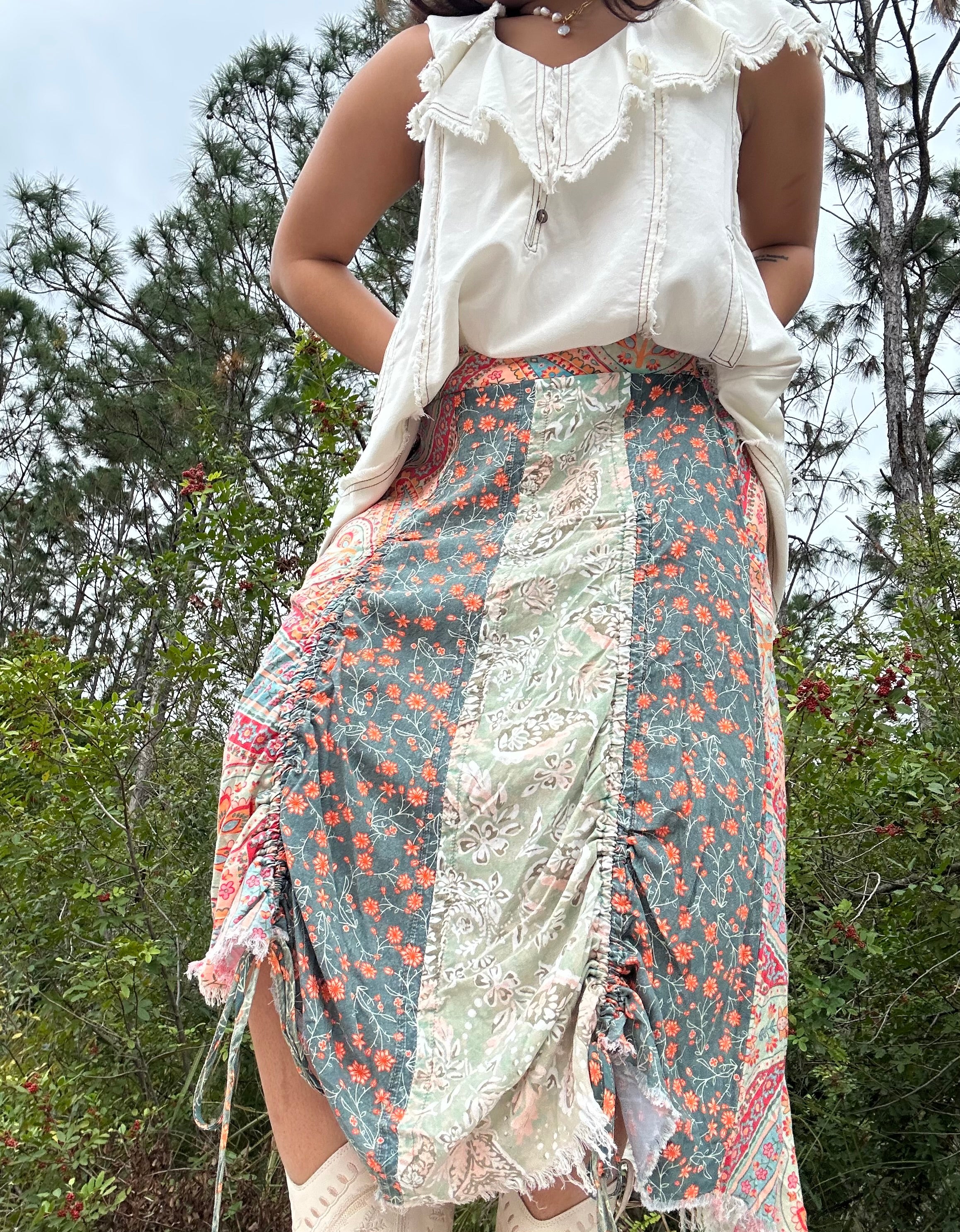 Oli & Hali Patchwork Print Cinched Midi Skirt