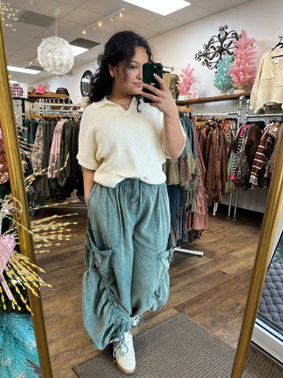 Washed Wide Leg French Terry Cargo Pants (5 COLORS) Easel
