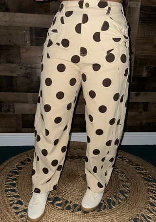 Peach Love Cream & Pink Polka Dot Gypsy Fit Wide Leg Pant