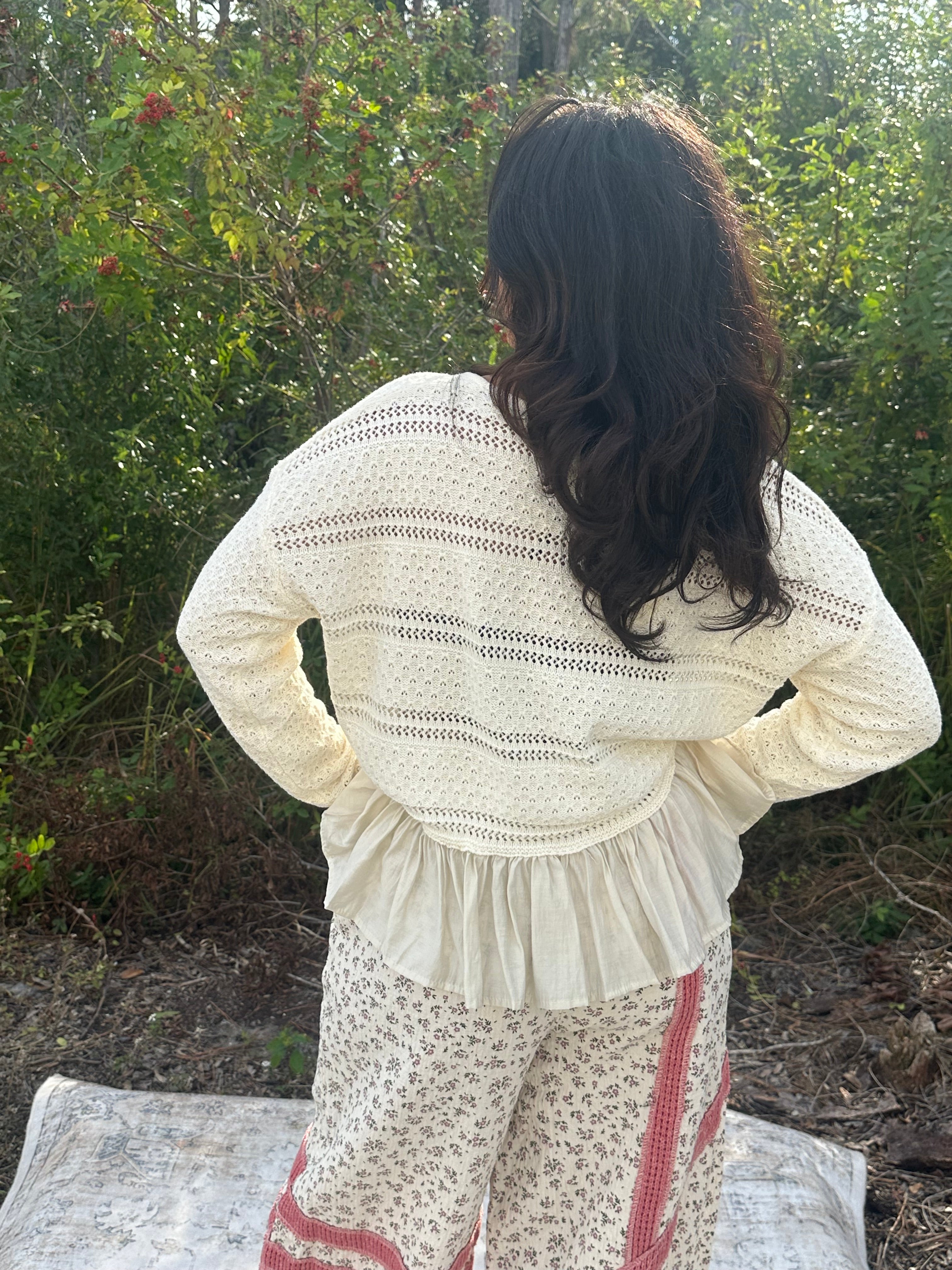In Feb Ivory Ruffle Hem Lightweight VNeck Sweater Top