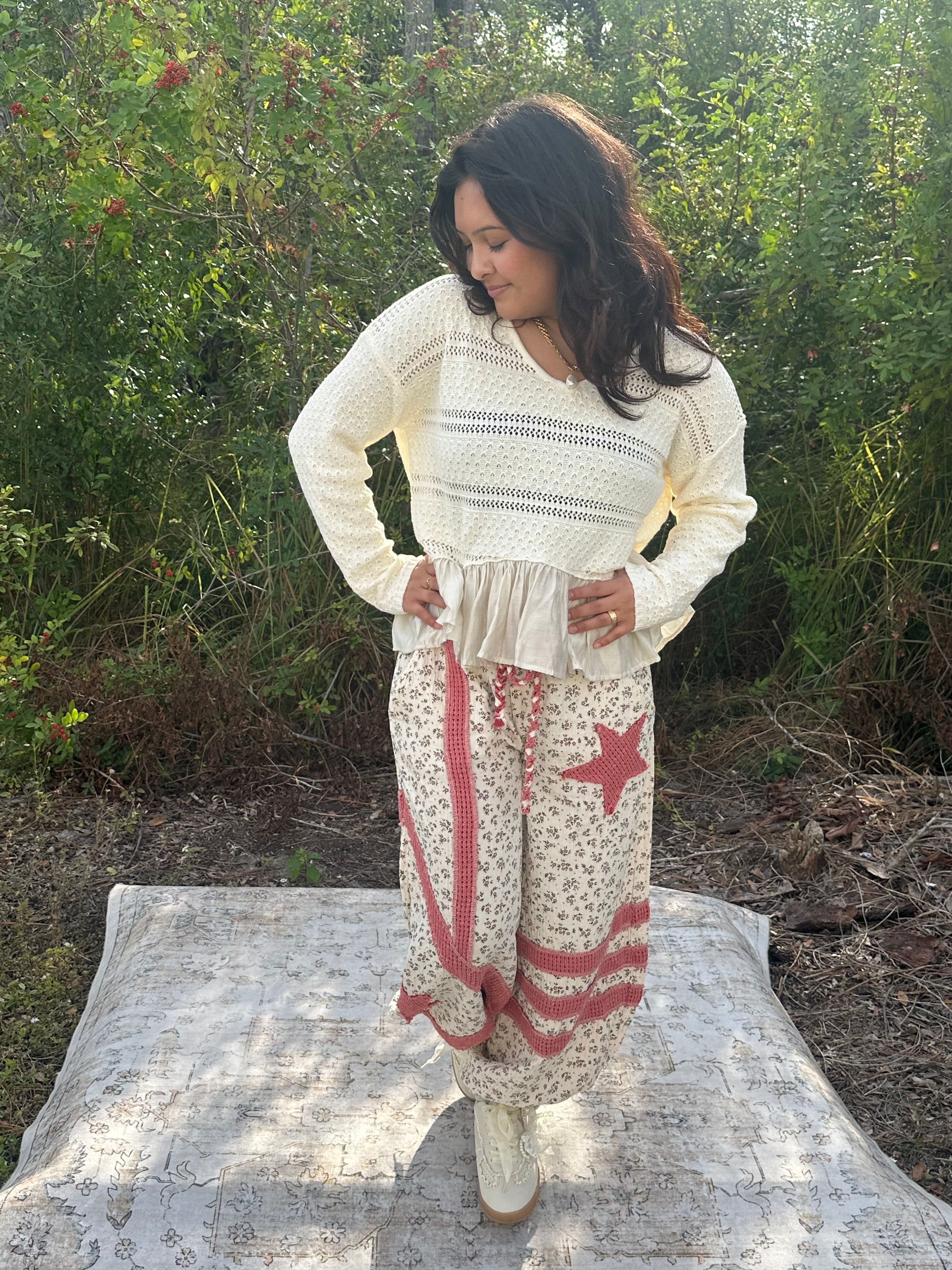 Cozy meets cute in this ivory sweater top that's anything but basic. The lightweight knit keeps you comfortable whether you're layering through chilly days or going solo when the weather cooperates. A flattering V-neckline pairs perfectly with the playful ruffle hem that adds just the right amount of personality to your everyday look. Effortlessly versatile, this piece transitions from casual coffee runs to weekend hangouts with style to spare.
