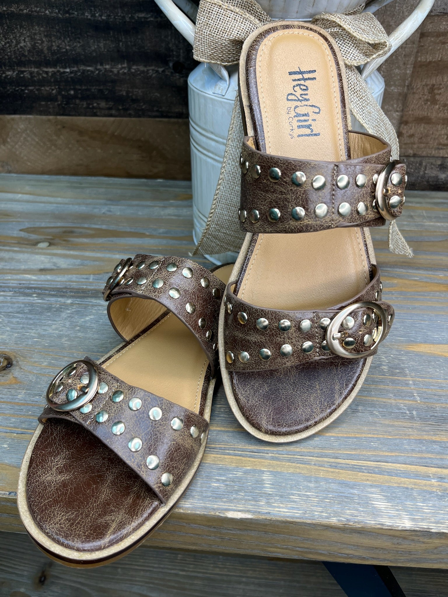 Strut into summer with these show-stopping studded sandals that blend edgy glamour with everyday comfort. The rich cognac leather pairs perfectly with gleaming gold studs for a look that's equal parts sass and sophistication. Designed for those who refuse to blend in, these Corkys sandals deliver the perfect balance of bold style and wearable ease. Whether you're heading to brunch or a night out, these statement-makers will have everyone asking where you got them.
