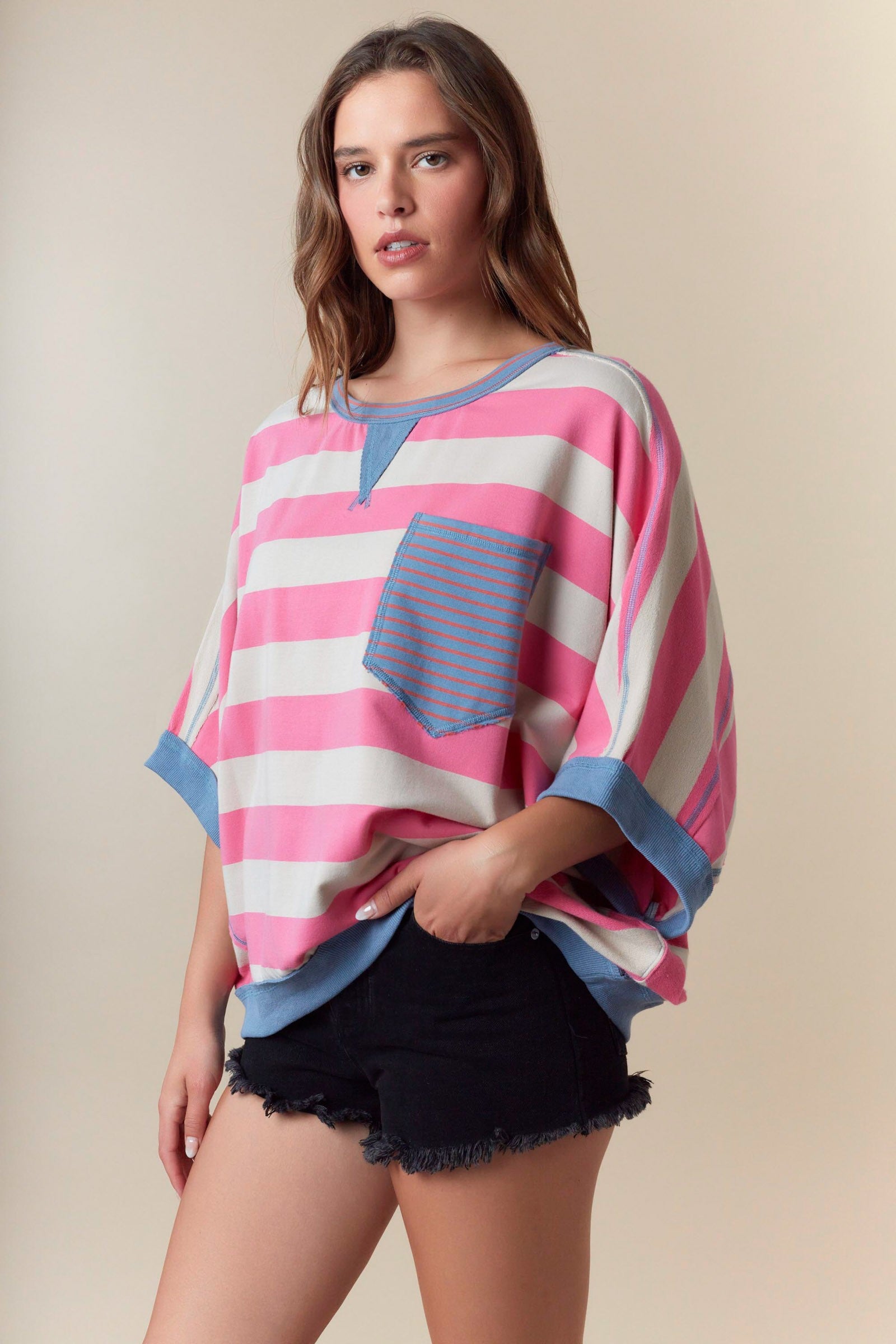 Fantastic Fawn Pink & Taupe Stripe Color Block Easy Pullover