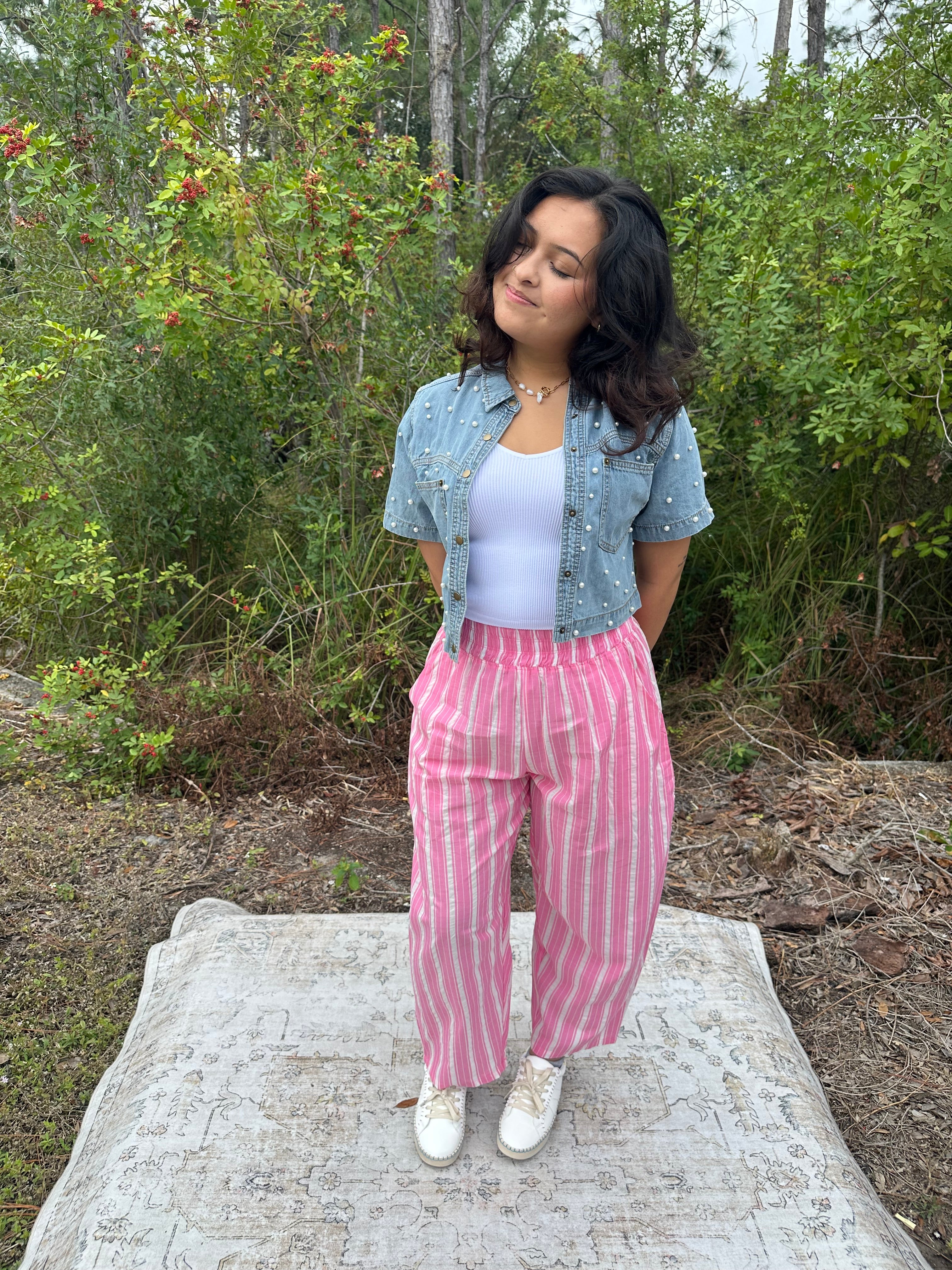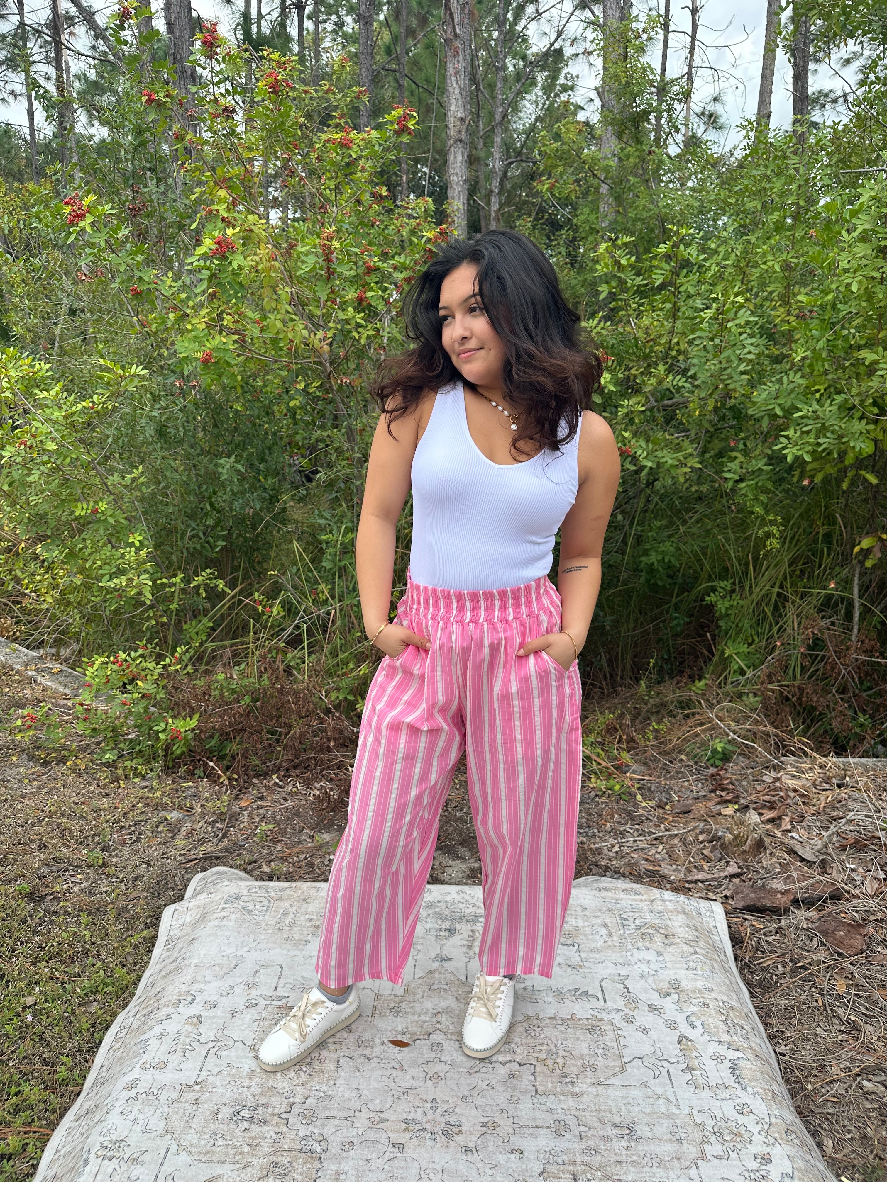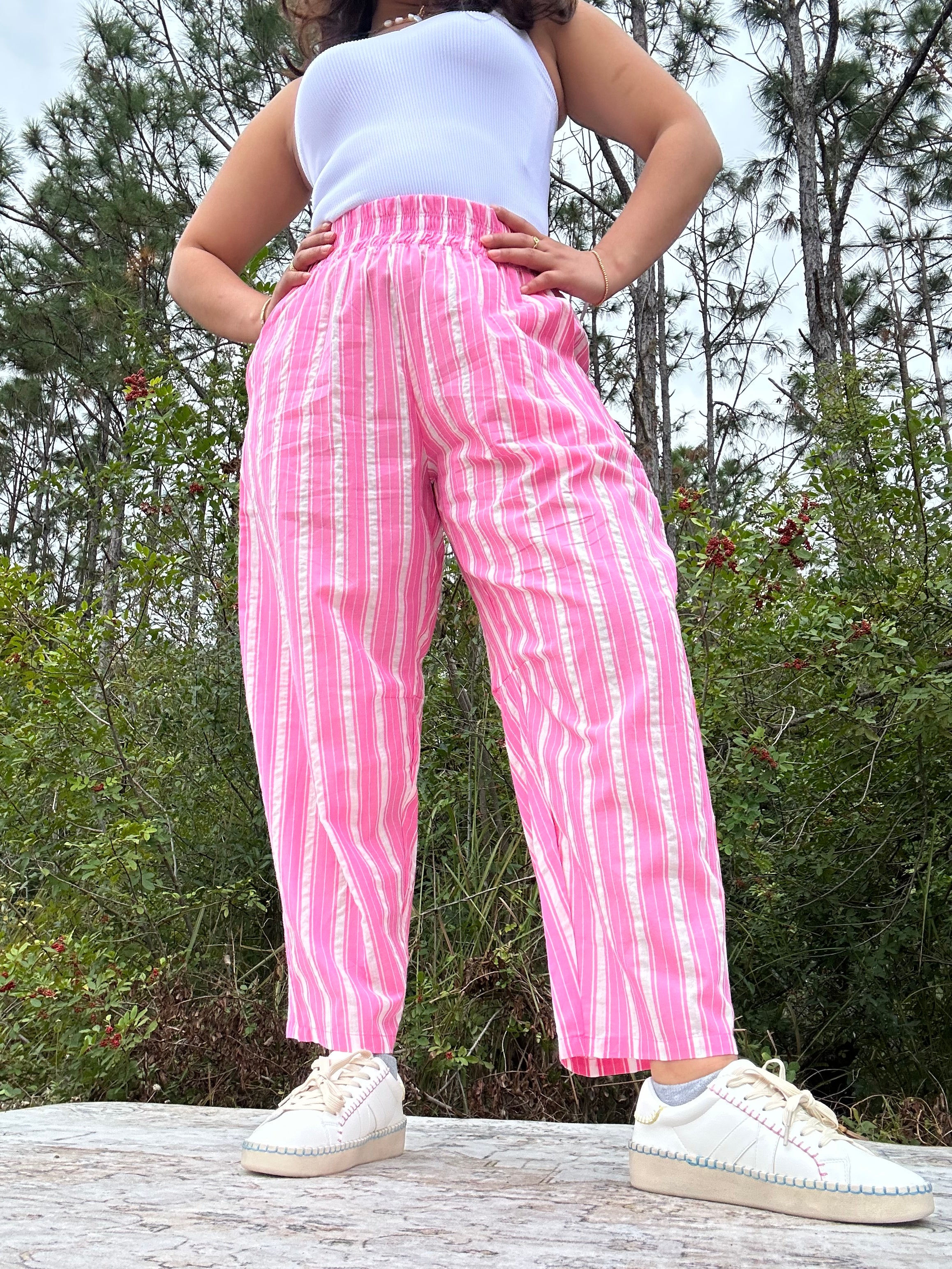 Oddi Pink Striped Relaxed Fit Cotton Pants