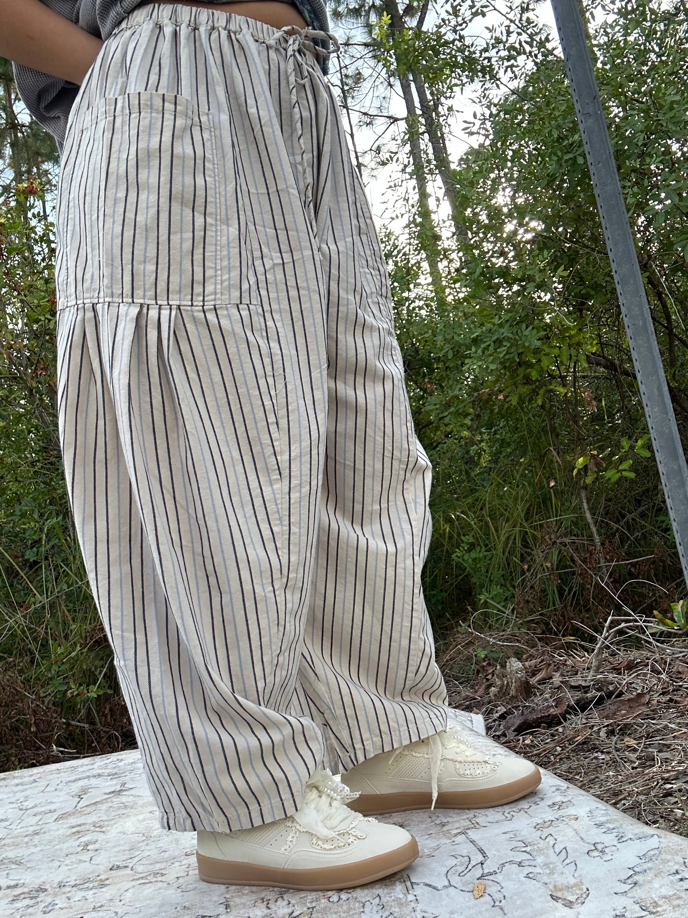 Stripes that mean business—and comfort. These Rae Mode pants will keep you moving through your day without sacrificing that effortlessly put-together vibe. The taupe and blue palette plays well with everything in your closet, while the relaxed fit lets you breathe. Perfect for casual Fridays, weekend wandering, or whenever you want to look polished without trying too hard.
