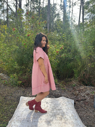 &Merci Charcoal & Blush Stripe Ruffle Midi Dress FINAL SALE